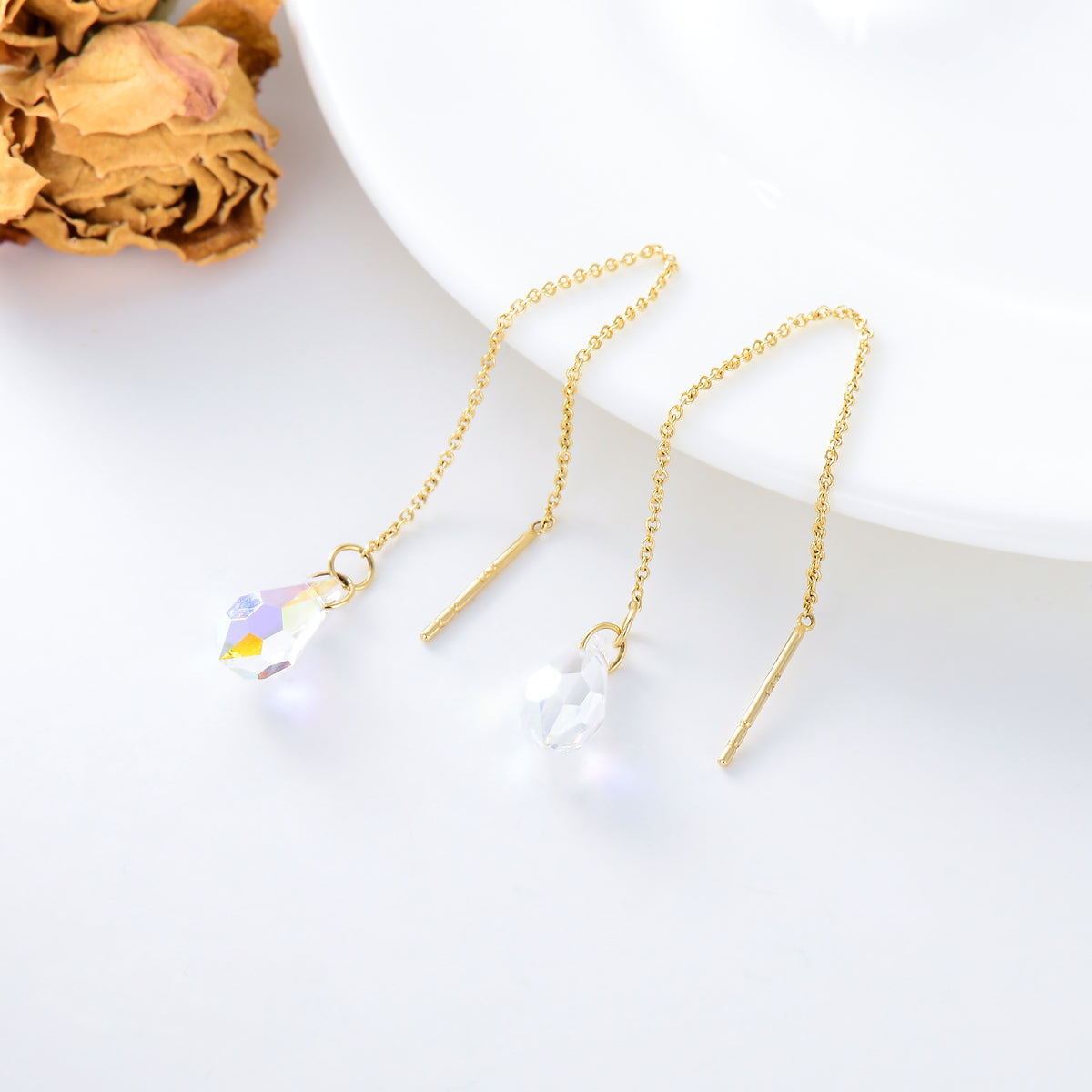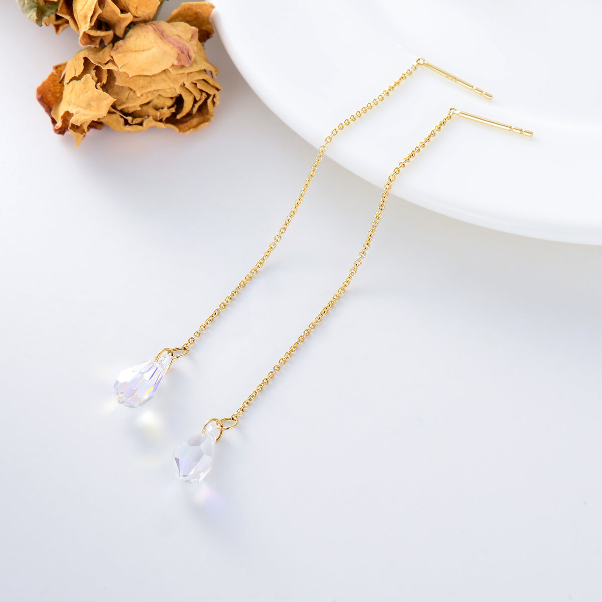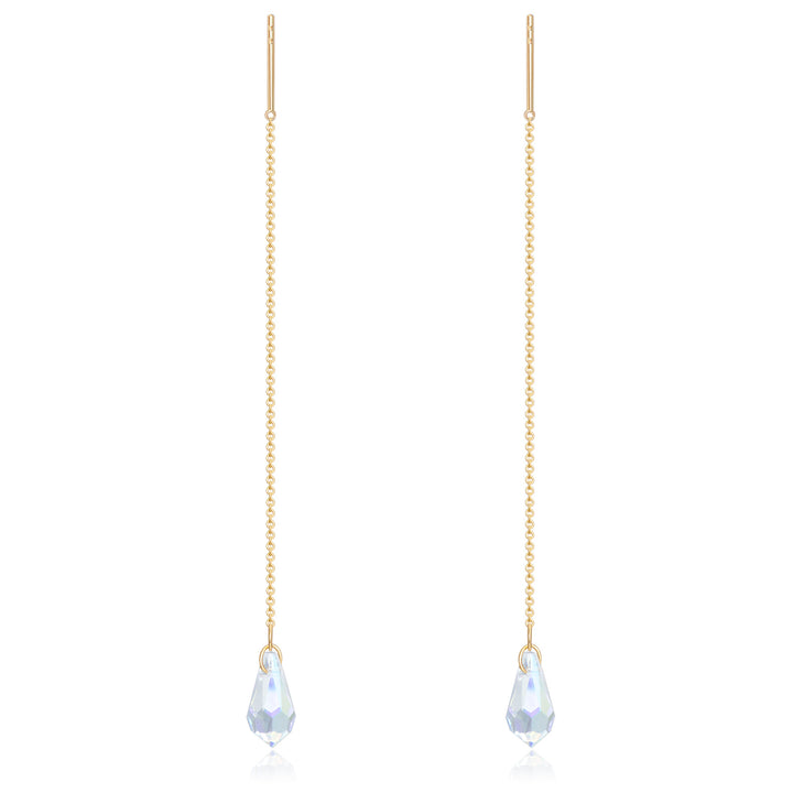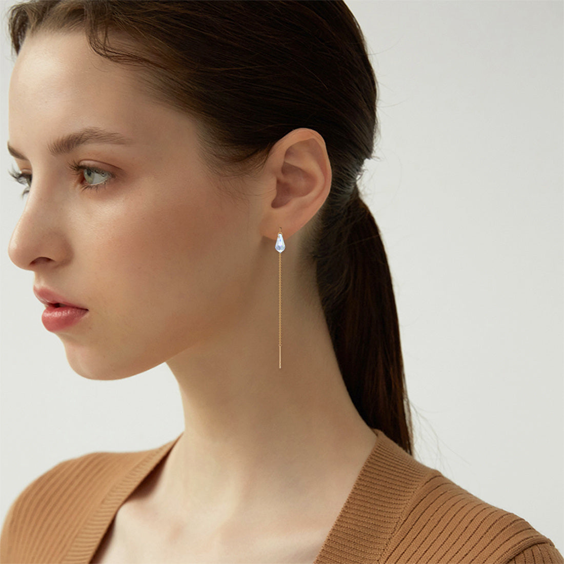 These Women's Drop Earrings are crafted from 14K Gold, featuring Mesmerizing Pear-Shaped Moonstones in a Drop Shape.