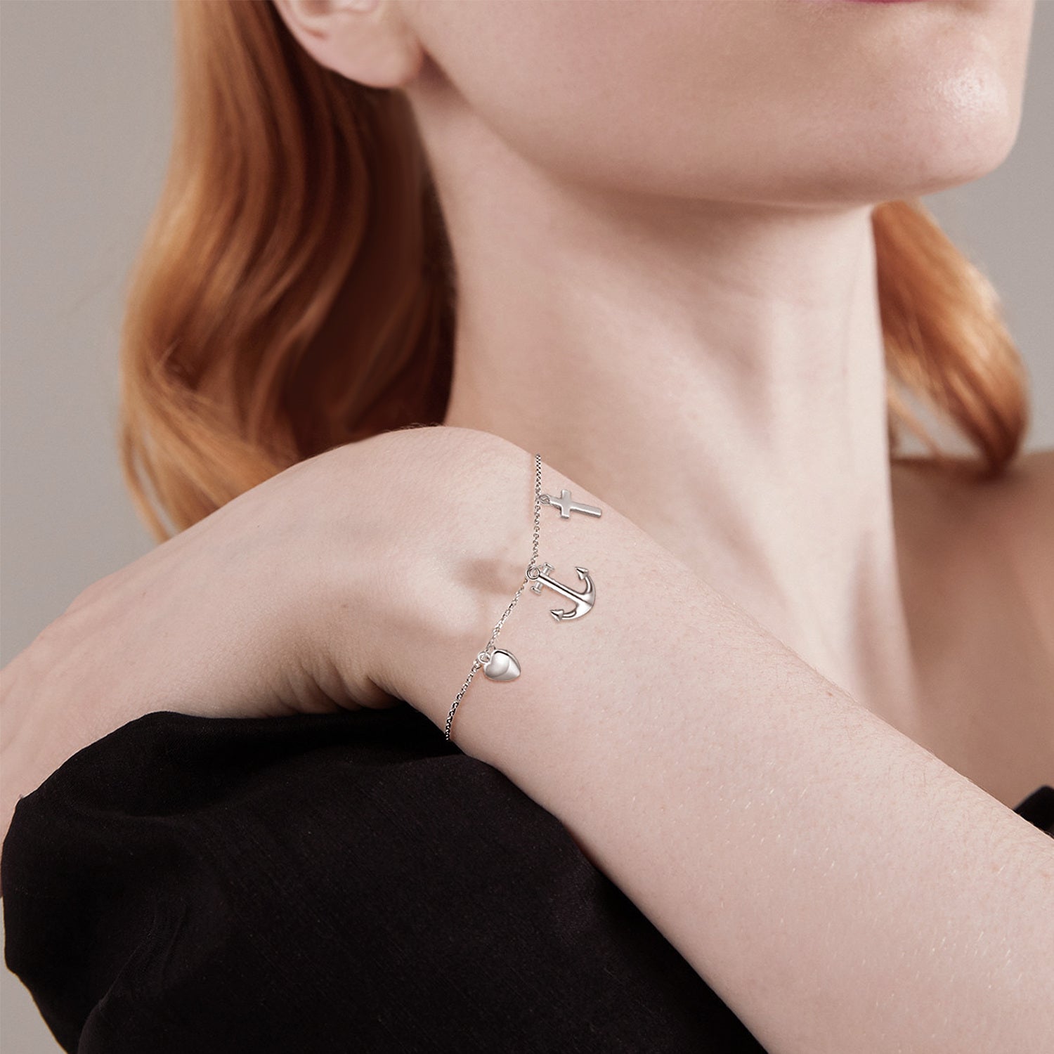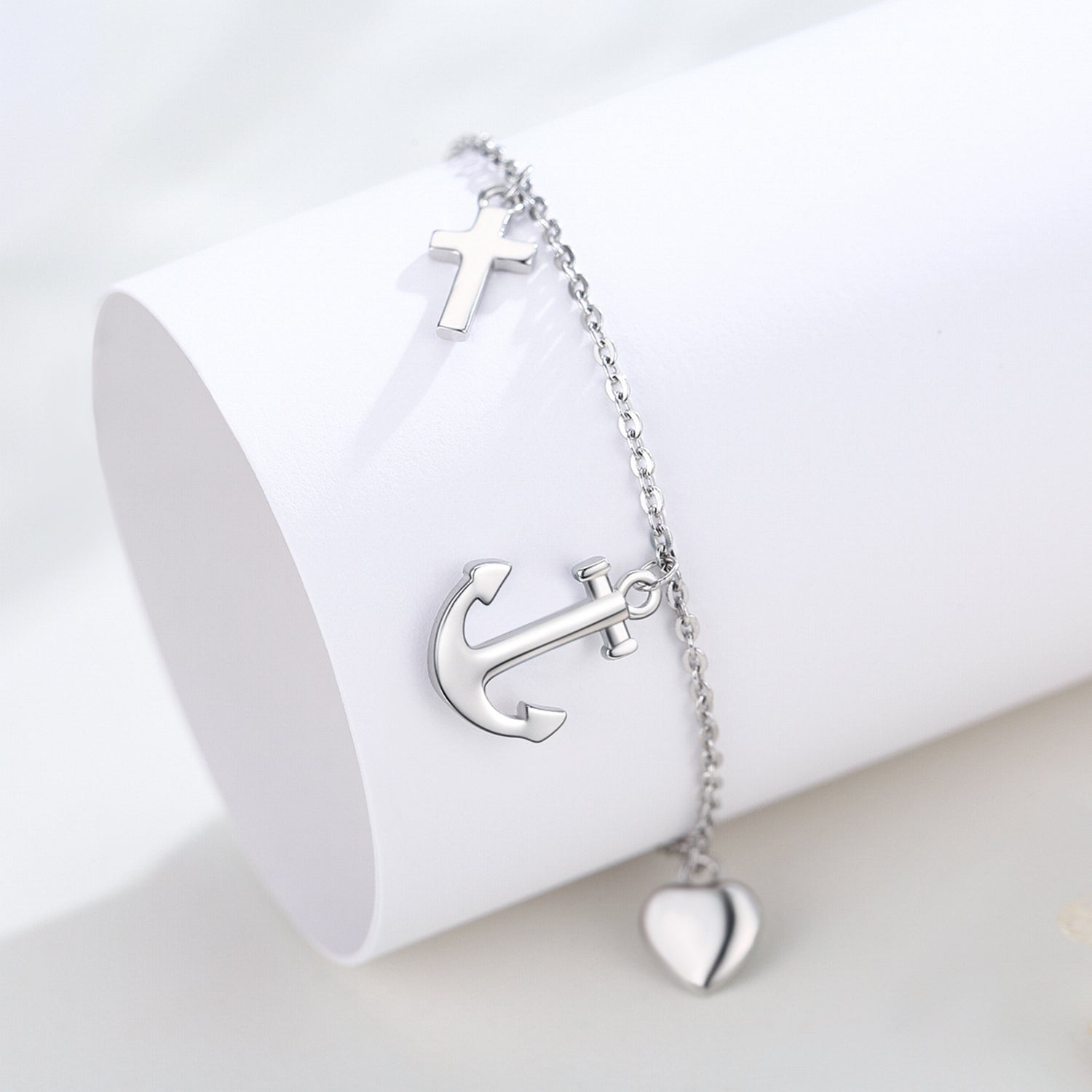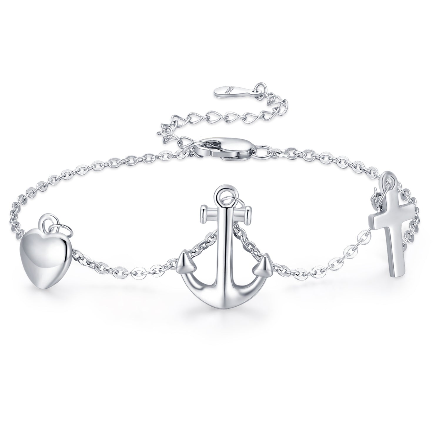 Sterling Silver Anchor With Cross With Heart Bracelet For Women