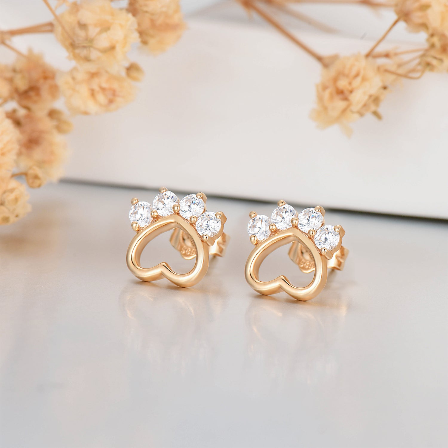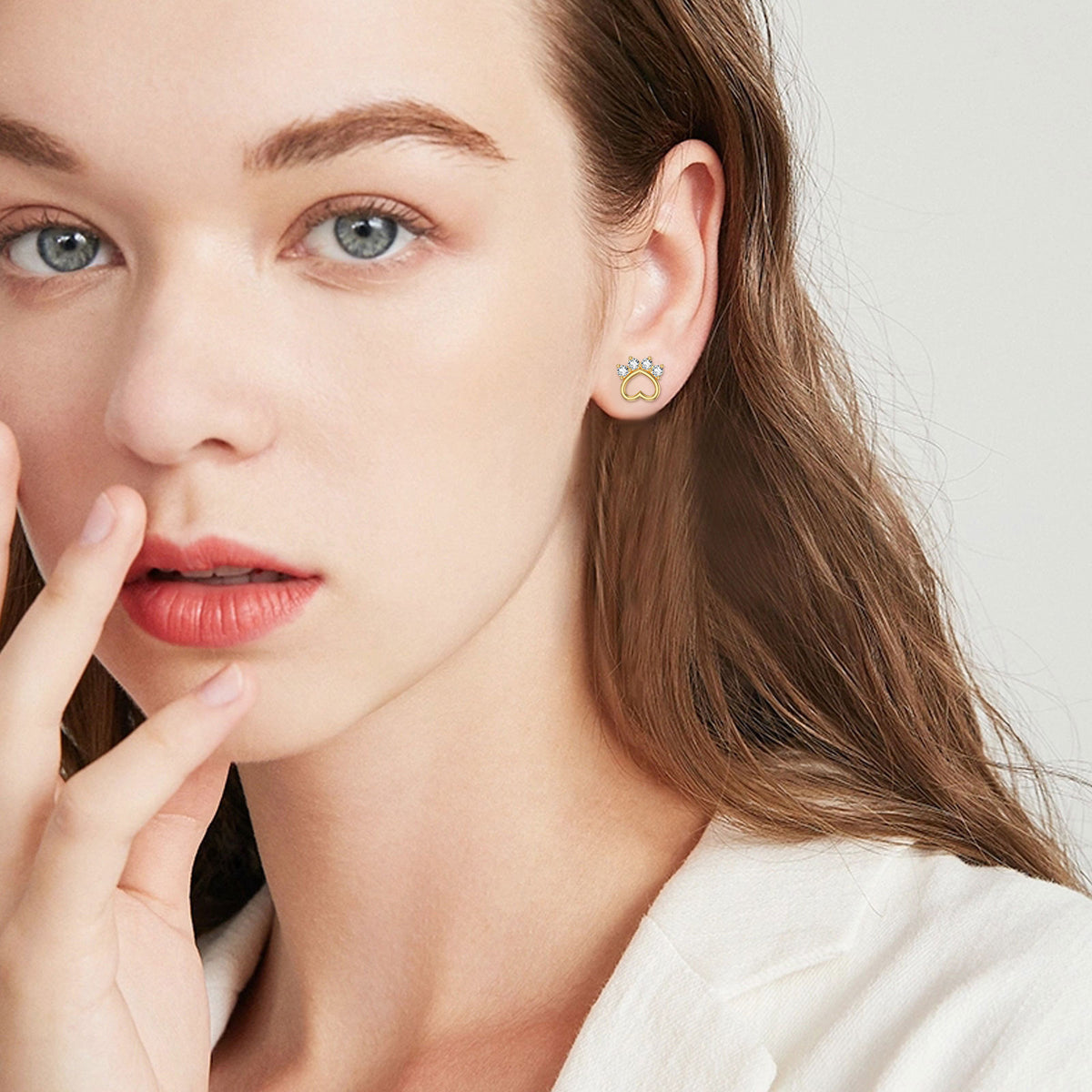 14K Gold Paw Print Earrings Studs for Women Girls Birthday Gift