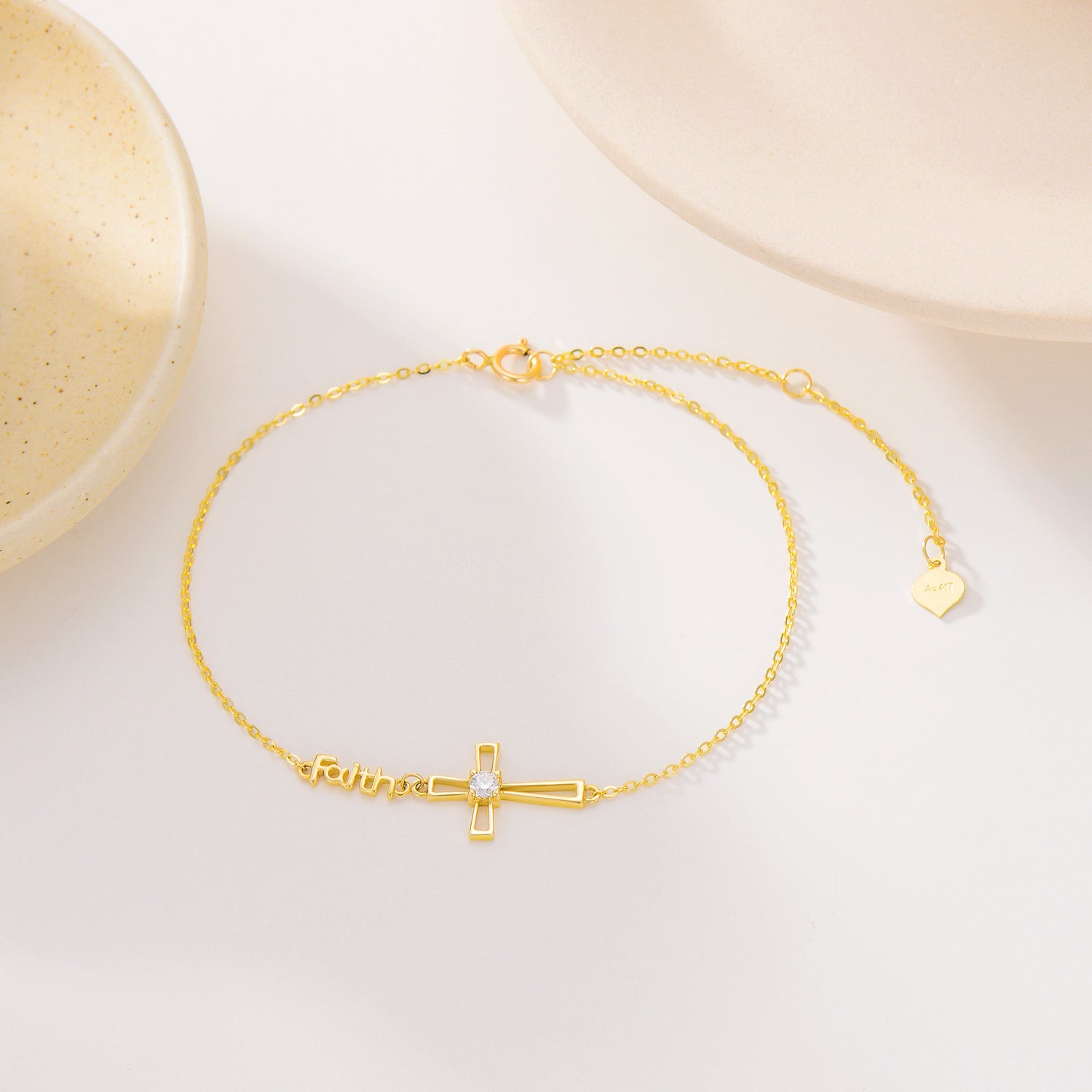 10K Gold Moissanite Personalized Engraving Cross Charm Bracelet