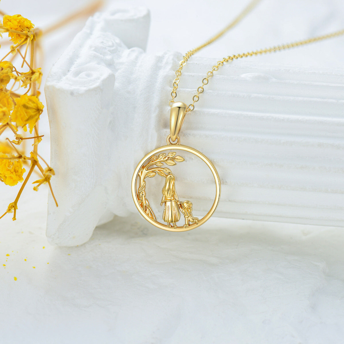 This 14K Gold Tree of Life & Mother & Daughter Pendant Necklace by YFN honors the profound bond shared between mother and daughter through its deeply symbolic design. The Tree of Life represents strength, growth, and rooted connection, while the 14K gold setting adds luminous elegance that endures through time. Meticulously crafted, the pendant evokes warmth and emotional resonance, making it a cherished keepsake for celebrating milestones or everyday love. Ideal for women who appreciate meaningful jewelry, this piece blends sentimentality with sophistication, becoming a timeless reminder of unity, resilience, and the unbreakable ties of family.