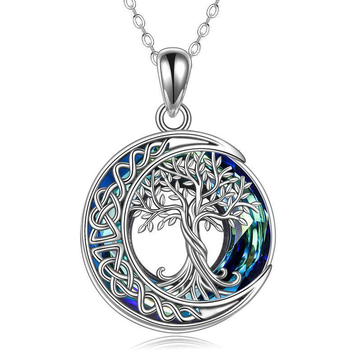 Sterling Silver Tree Of Life Celtic Knot & Moon Circle Crystal Pendant Necklace