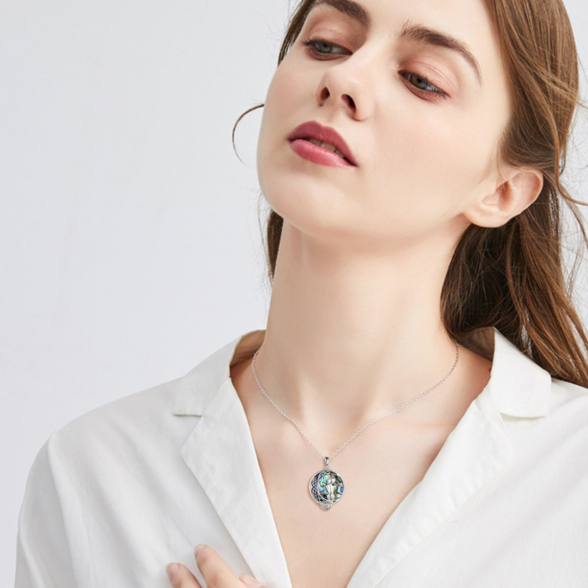 This Sterling Silver Circular Abalone Shellfish Celtic Knot With Mermaid With Moon Pendant Necklace by YFN is a captivating, elegant piece for women. This White Gold Plated Circular Pendant Necklace harmonizes a vibrant Abalone Shellfish with intricate Celtic Knot, Mermaid, and Moon Motifs, perfect for both everyday wear and special occasions.