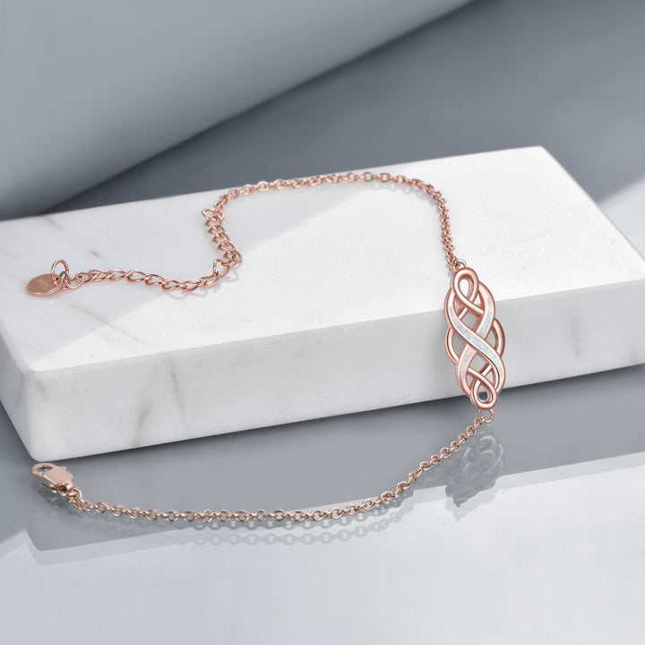 Sterling Silver with Rose Gold Plated Opal Celtic Knot Charm Bracelet