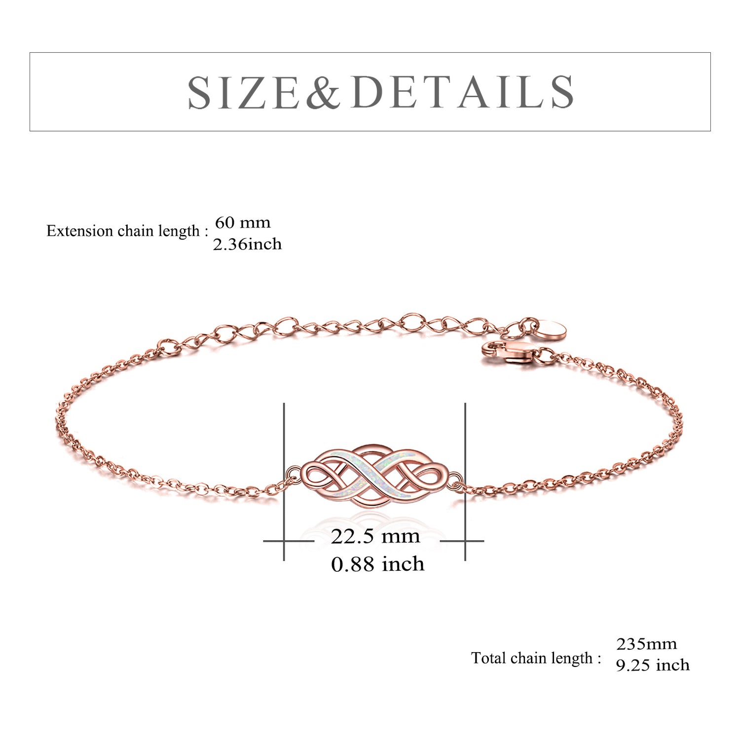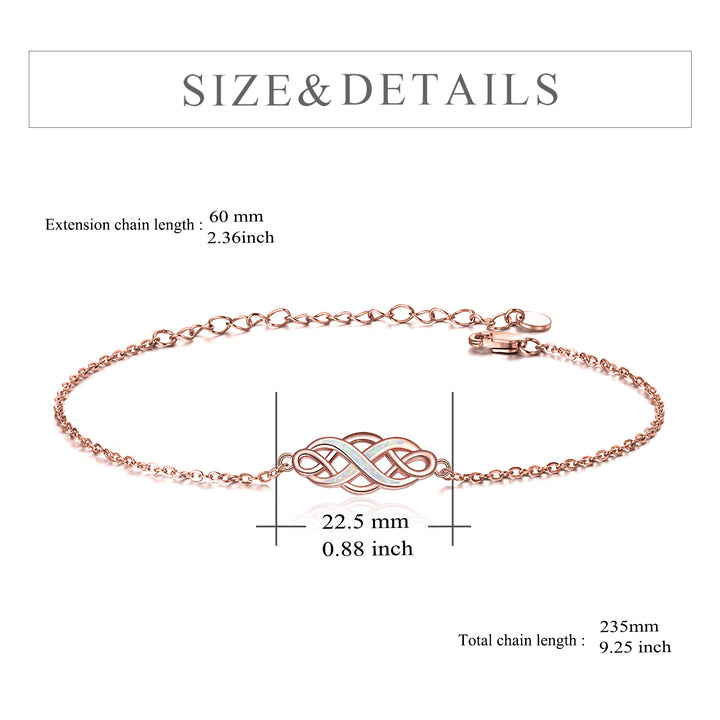 This Sterling Silver with Rose Gold Plated Opal Celtic Knot Charm Bracelet by YFN is an exquisite blend of tradition and modern flair. This Charm Bracelet showcases a mesmerizing Opal gemstone, radiating enchanting allure, beautifully framed by an elegant Celtic Knot design, symbolizing eternal love. The Rose Gold Plating over sterling silver adds a contemporary touch, ensuring a harmonious and sophisticated accessory. Meticulously designed for women, it perfectly complements grace and style for any occasion.