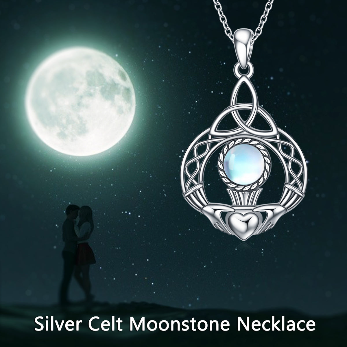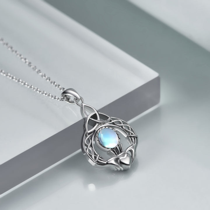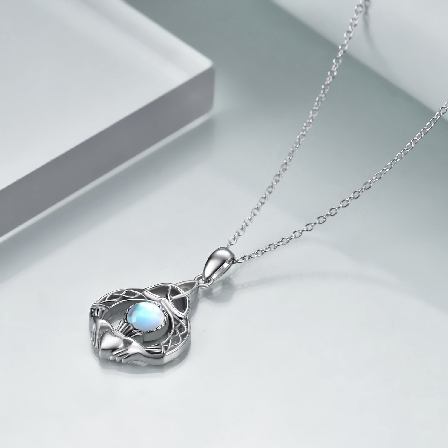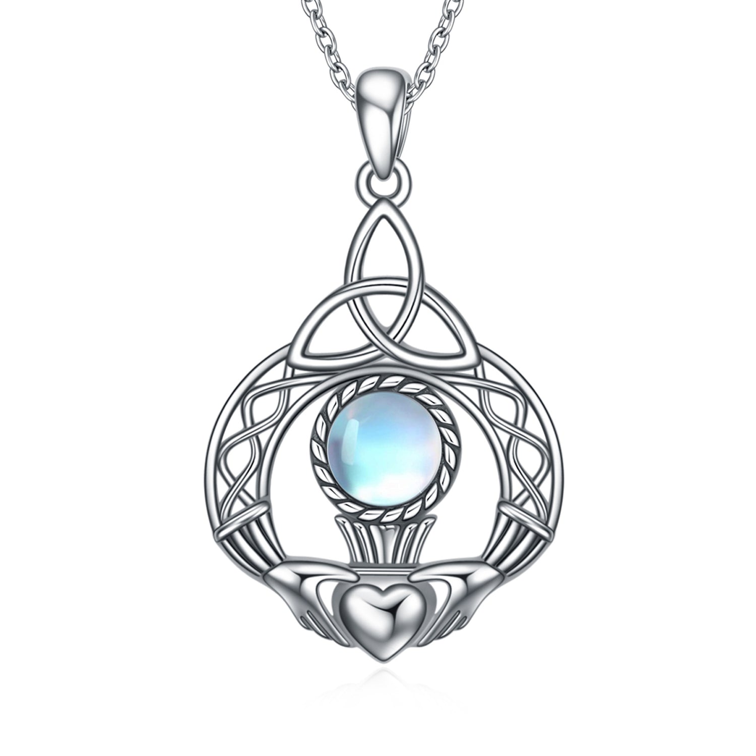 Sterling Silver Round Moonstone Celtic Knot Pendant Necklace