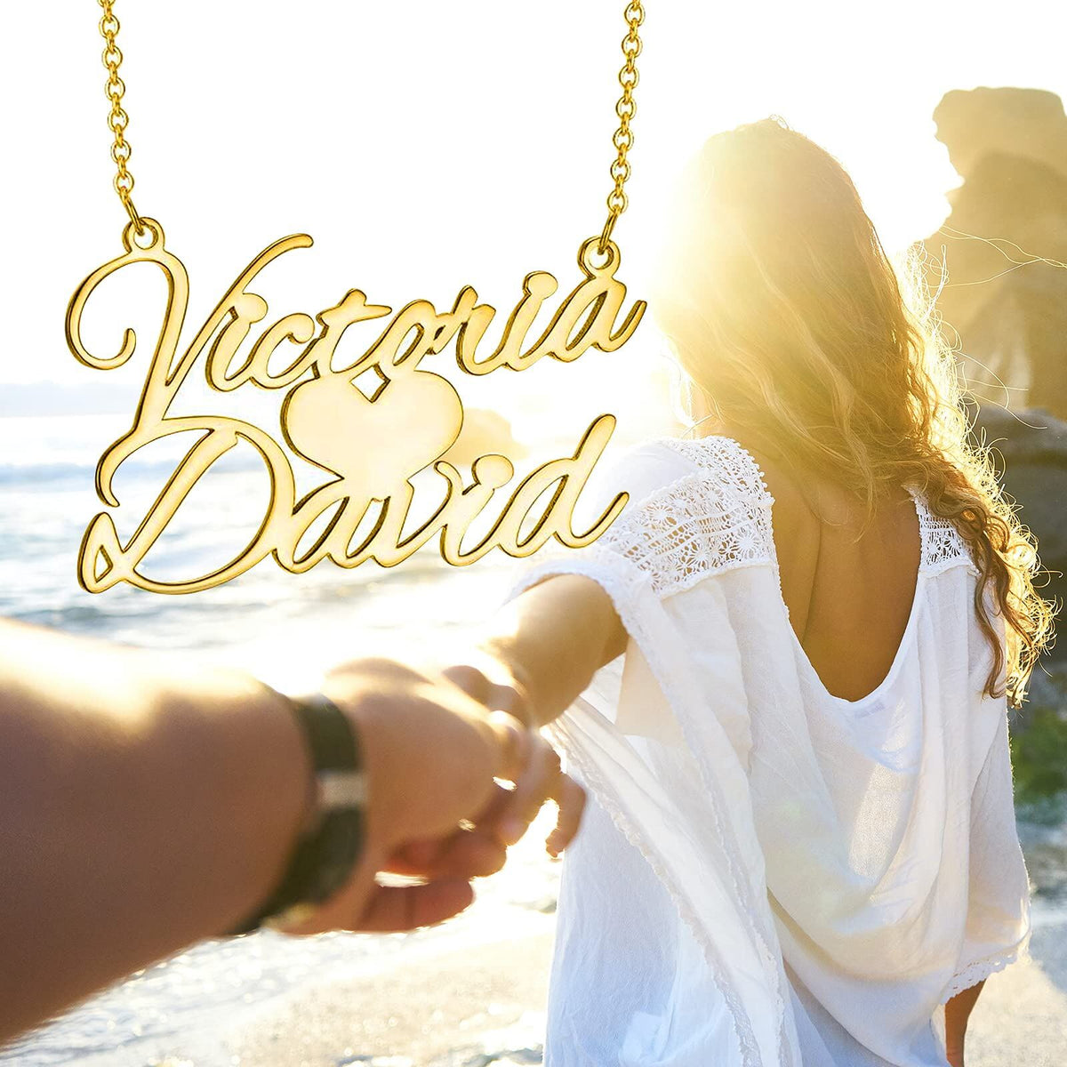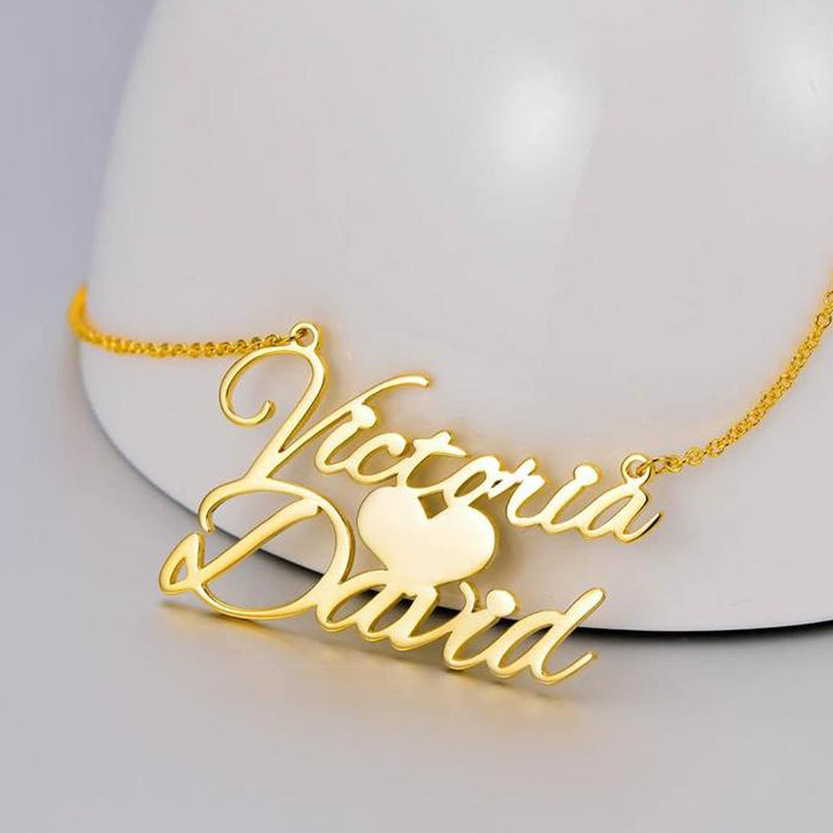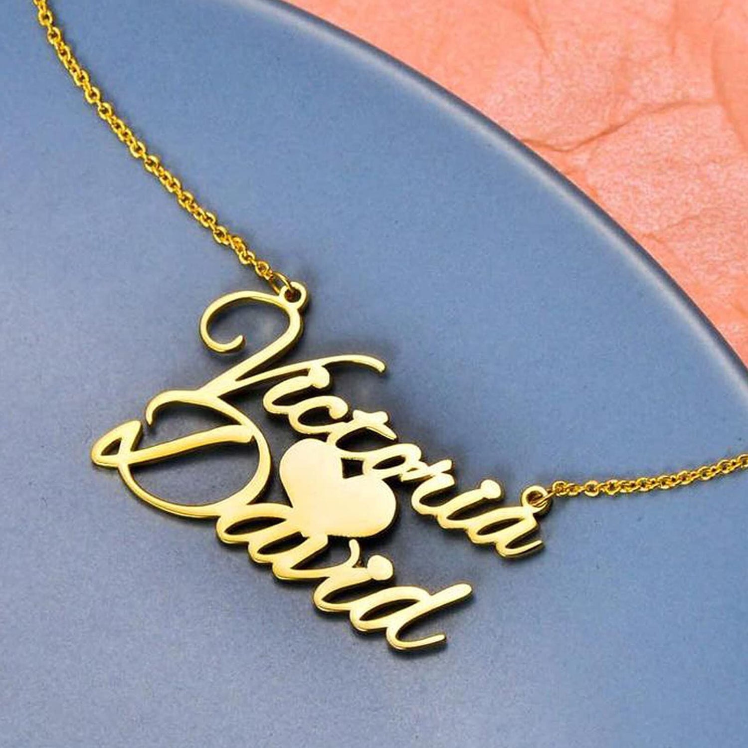 10K Gold Personalized Classic Name & Heart Pendant Necklace