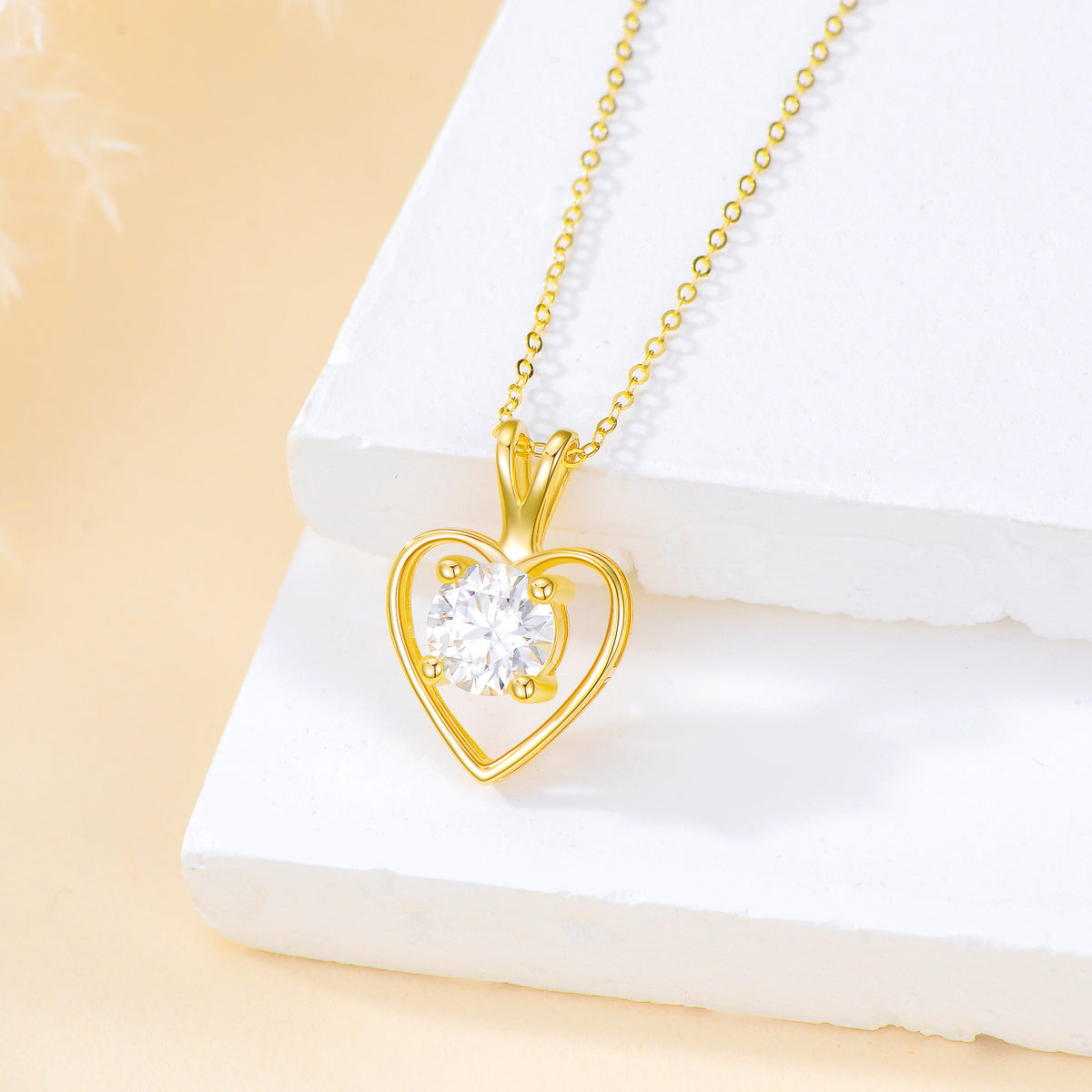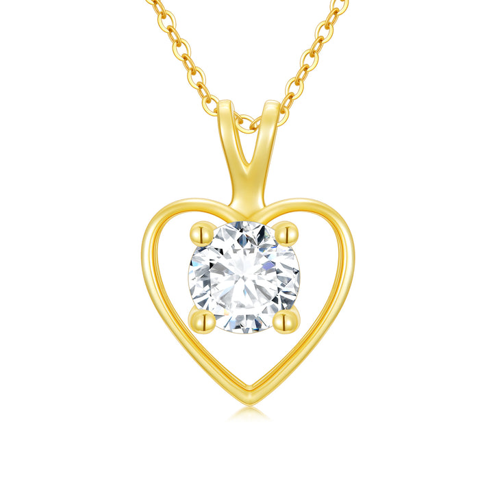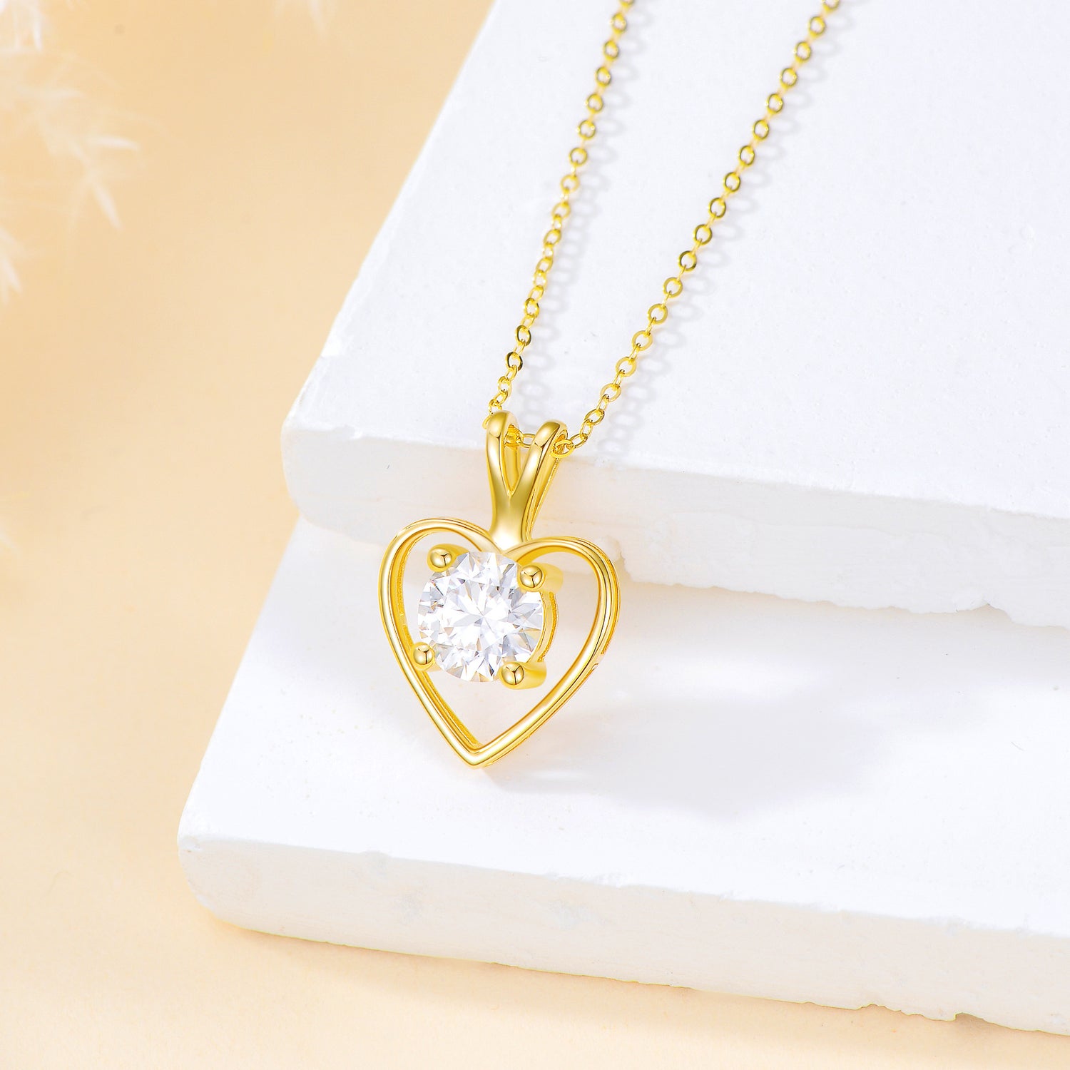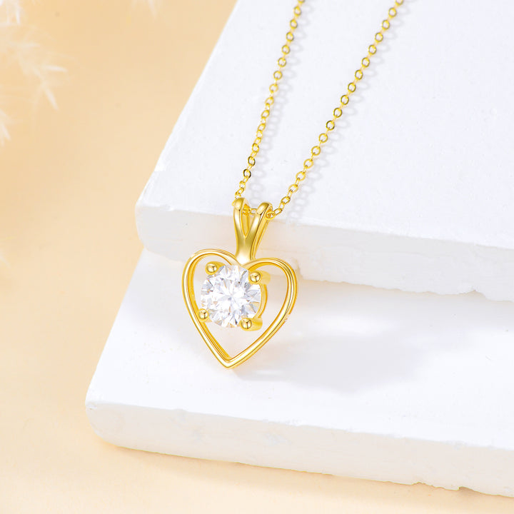 Crafted from 14K solid gold. Designed as a heart pendant necklace. Embellished with Moissanite stones.