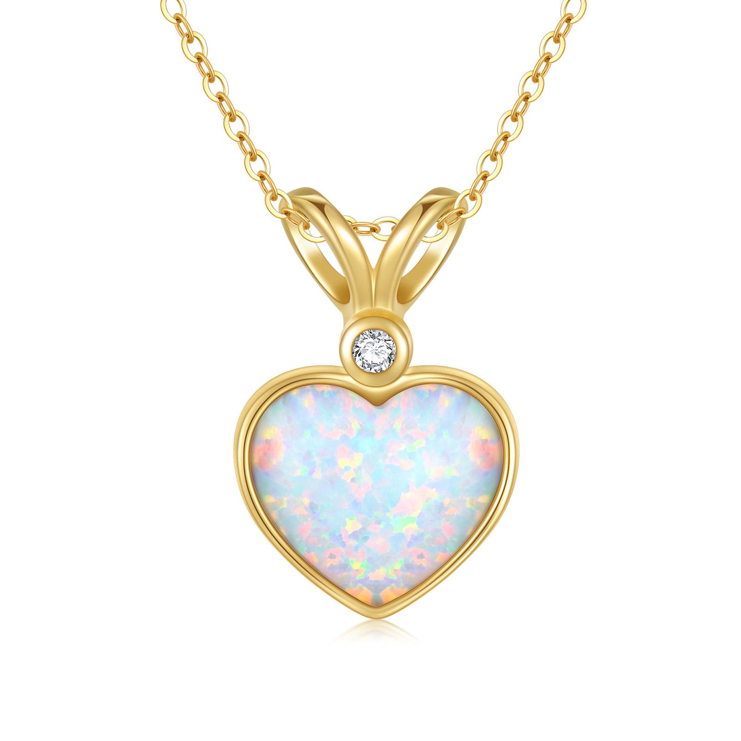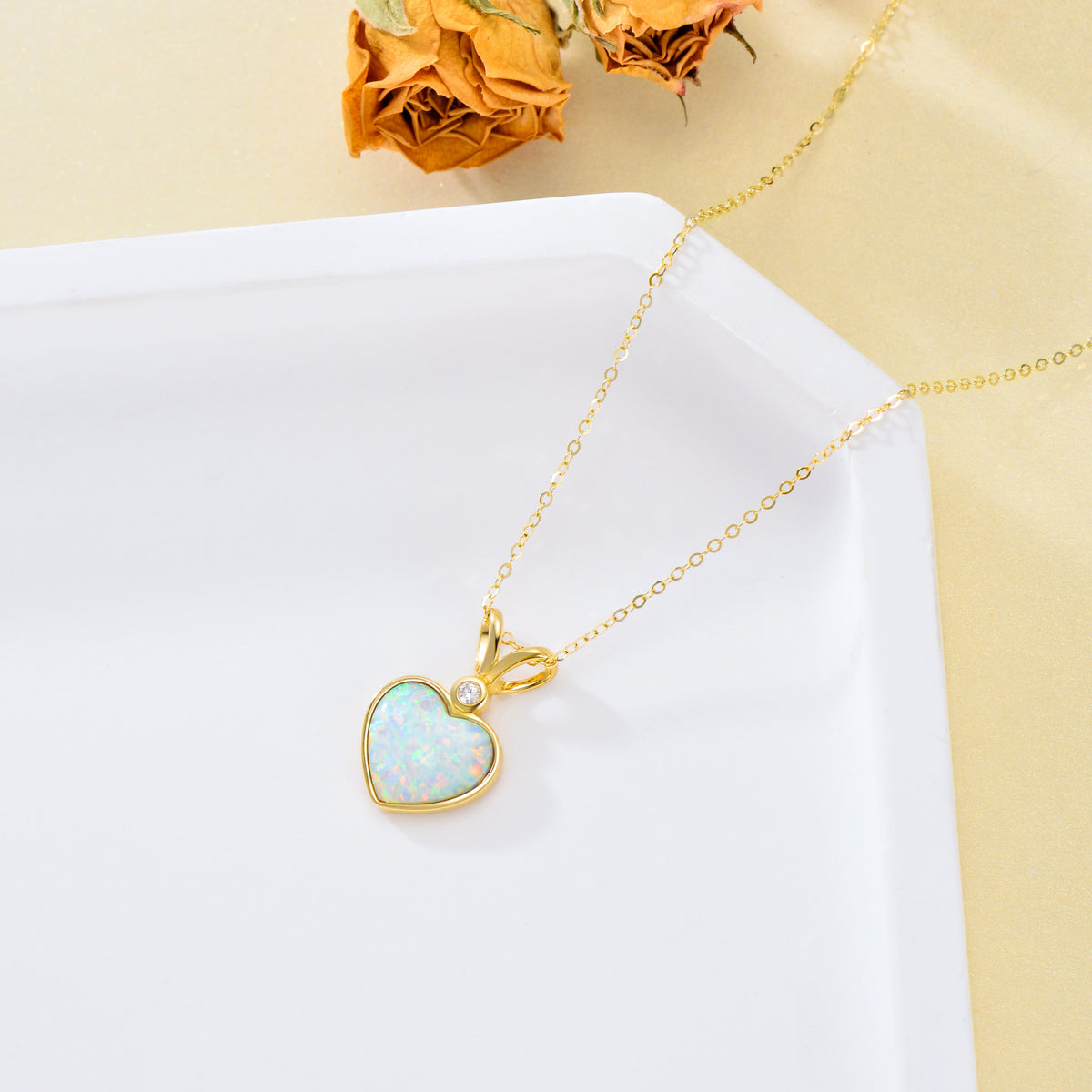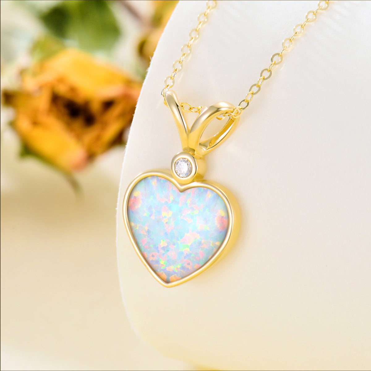 This Pendant Necklace is crafted from 14K Gold, combining a dazzling Circular Diamond setting with a romantic Heart-Shaped Opal.