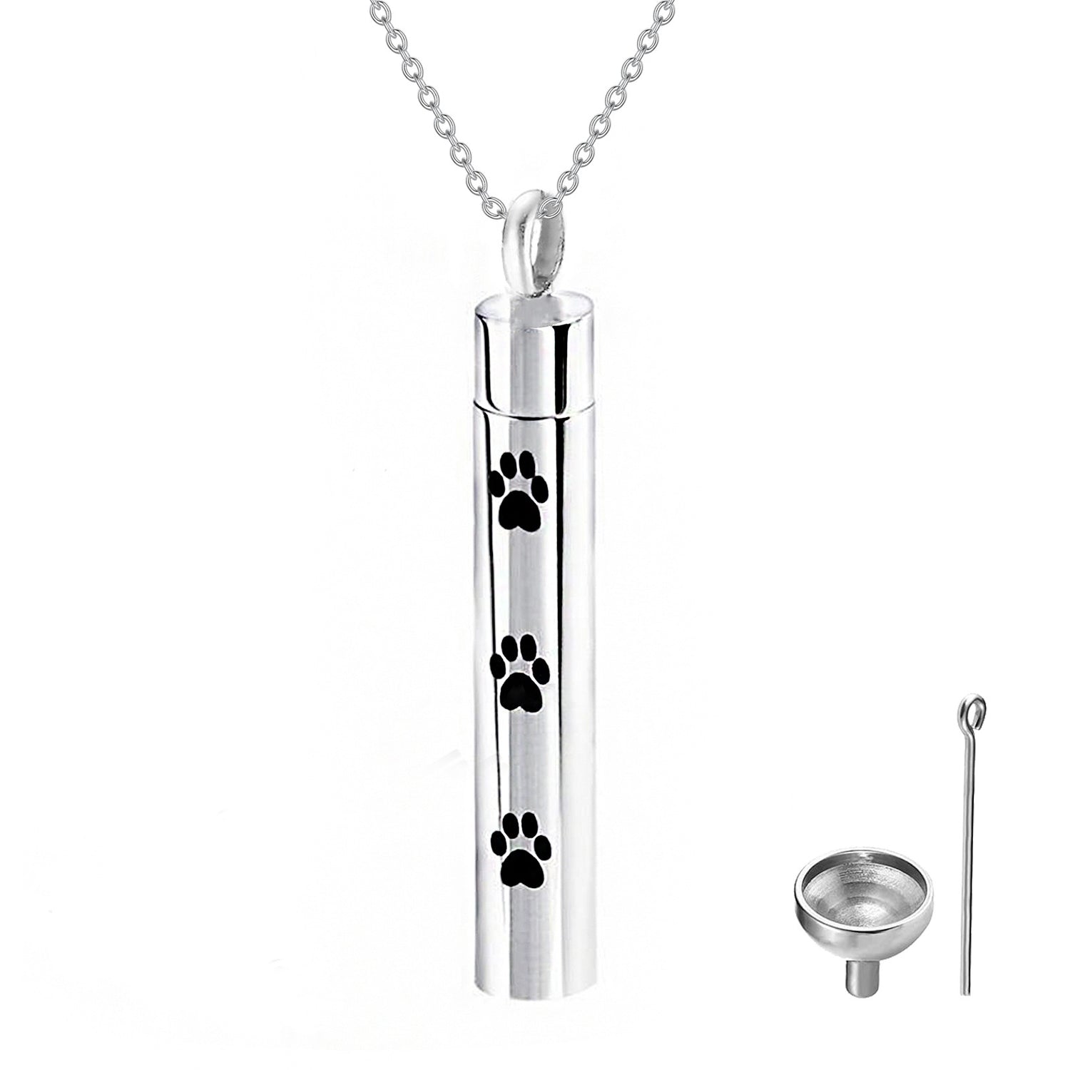 Sterling Silver Dog & Paw Urn Necklace for Ashes