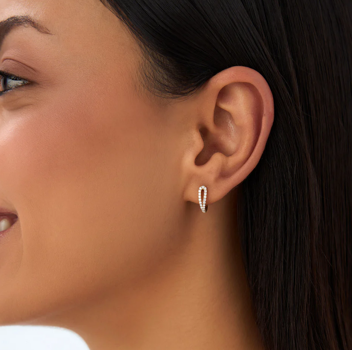These Double Mini Diamond Hoop Earrings by YFN elevate a woman's style with luxury and sophistication. Crafted from premium 14K Solid Gold, these 12.5 MM hoop earrings are adorned with 40 round diamonds (0.18 CT T.W., D color, VS clarity), ensuring dazzling sparkle and a timeless appeal for both everyday and special occasions.