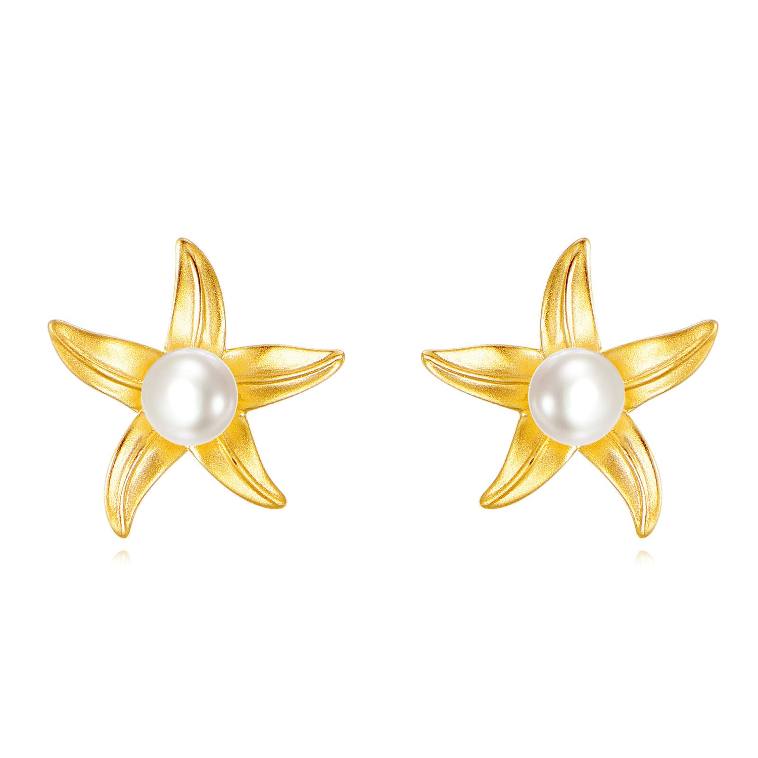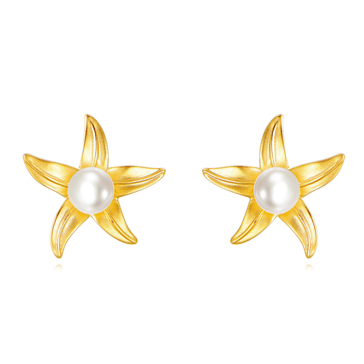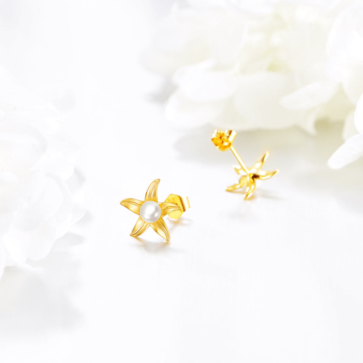 These stud earrings are crafted from 14K solid Gold. They feature Pearl accents and a starfish motif.