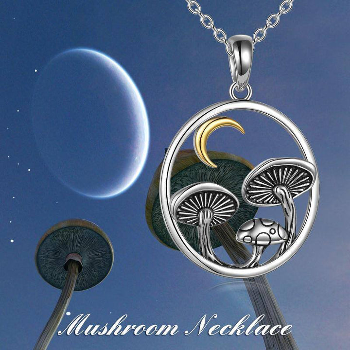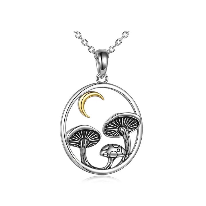 Crafted from premium Sterling Silver, this stone-free unisex Pendant Necklace features a Mushroom and Moon motif, available in silver and gold finishes.