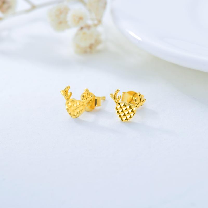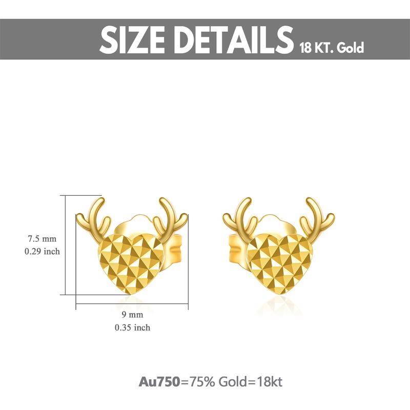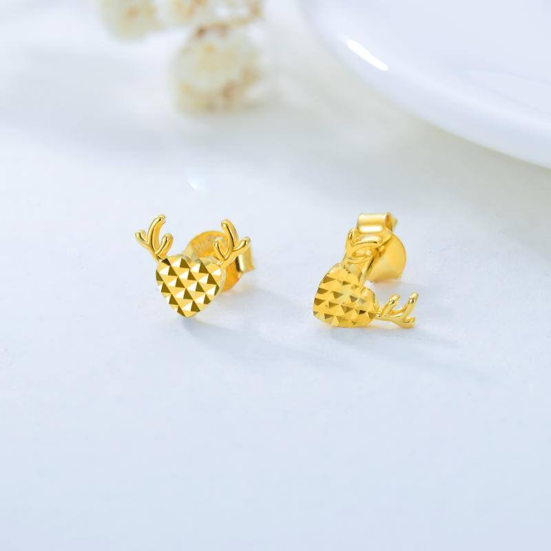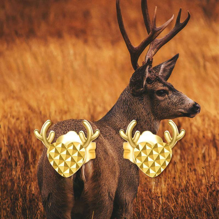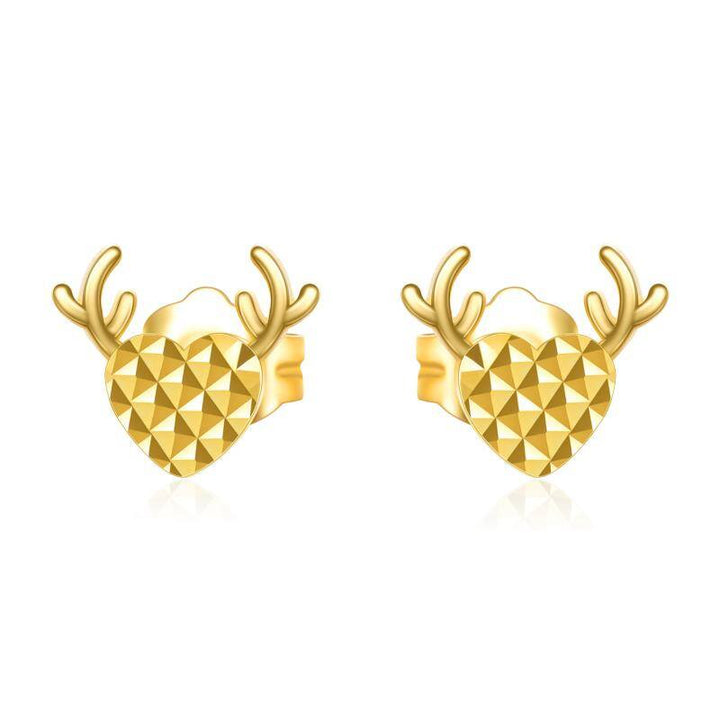 These no-stone Women's Stud Earrings are crafted from Premium 18K Gold, Featuring Intricate Elk and Heart Motifs.