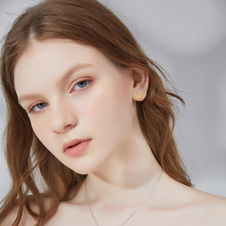 These 18K Gold Elk & Heart Stud Earrings by YFN offer a blend of elegance, whimsy, and nature-inspired design for women. Crafted from premium 18K gold, these stone-free stud earrings embody sophistication and charm. Each piece showcases intricate elk and heart designs, capturing the essence of modern femininity and nature's beauty, perfect for elevating everyday style.