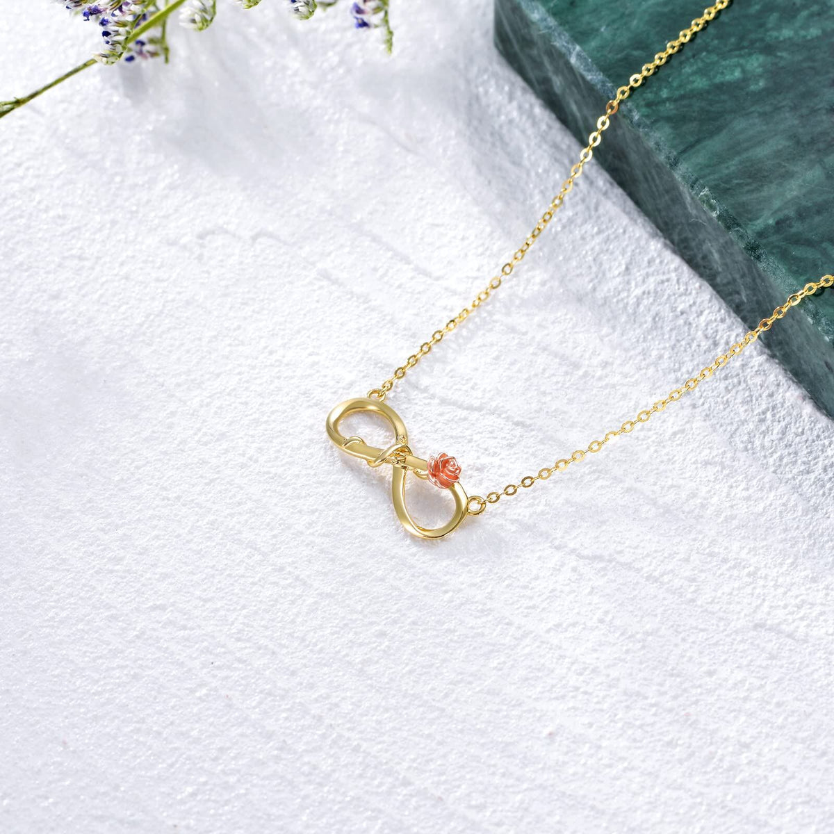 This 14K Gold Two-Tone Rose Infinity Symbol Pendant Necklace For Women by YFN combines timeless elegance with meaningful symbolism. Crafted in 14K Gold with a two-tone blend of gold and rose gold, this stone-free Pendant Necklace features the classic infinity symbol intertwined with a delicate rose motif, symbolizing everlasting love and beauty. Perfect for everyday wear or special occasions, this versatile accessory adds a touch of sophistication to any outfit.