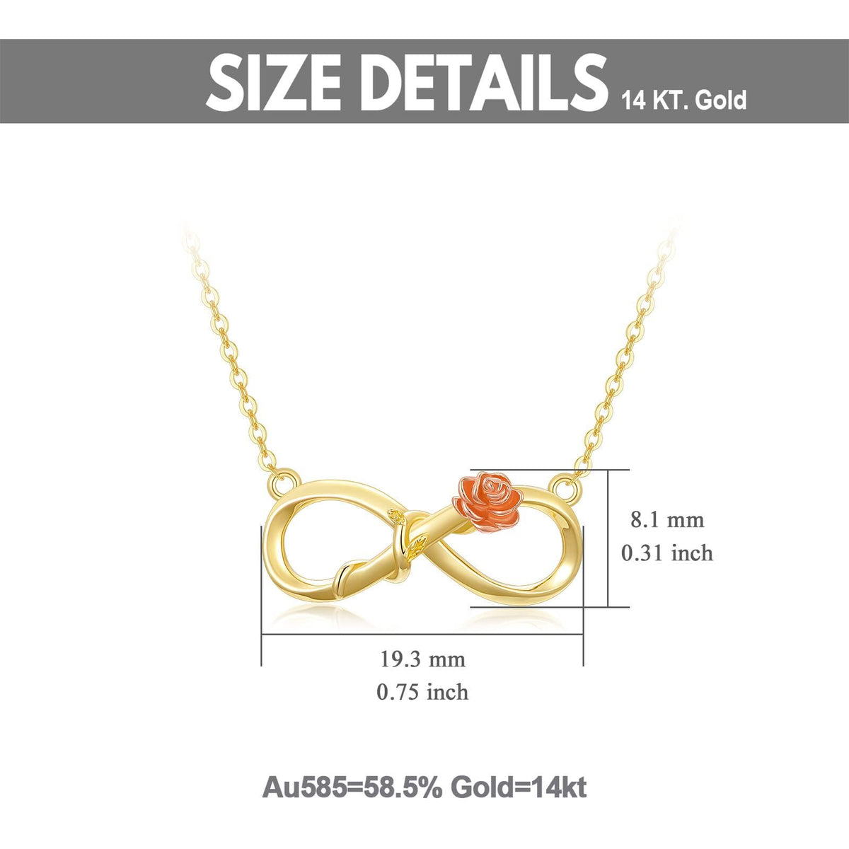 This no-stone Women's Pendant Necklace is crafted from 14K Gold in Two-Tone (Gold and Rose Gold), featuring a Rose and Infinity Symbol Motif.