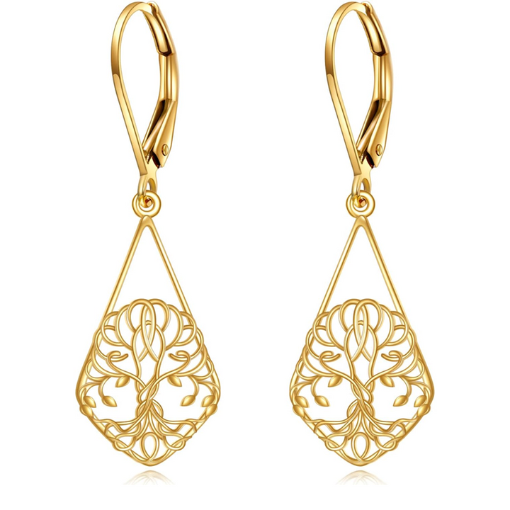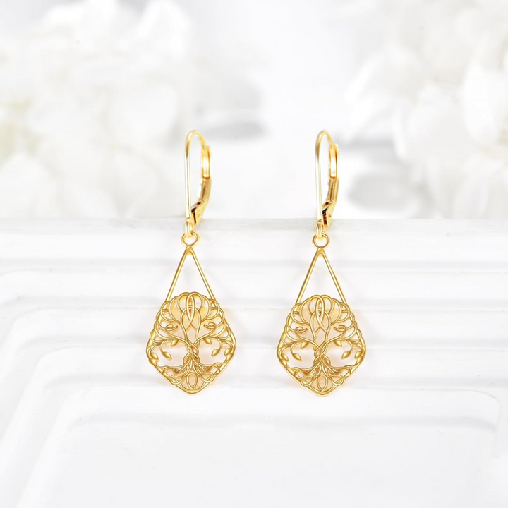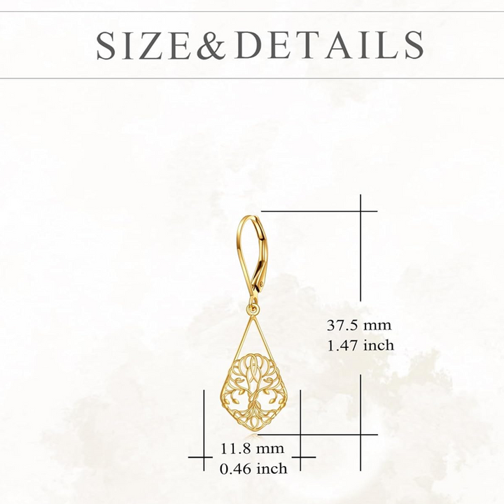 14K Gold Tree Of Life Lever-back Earrings for Women