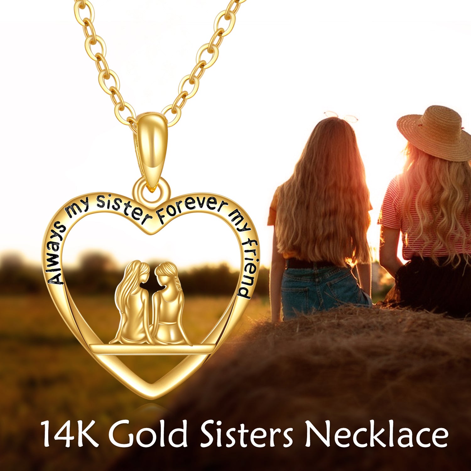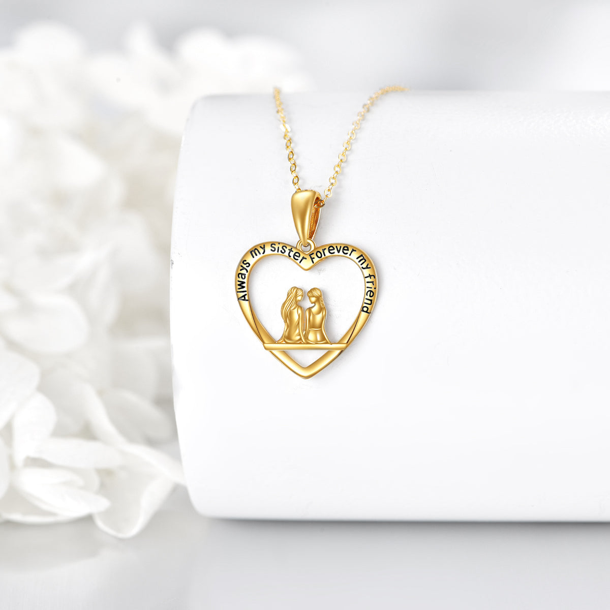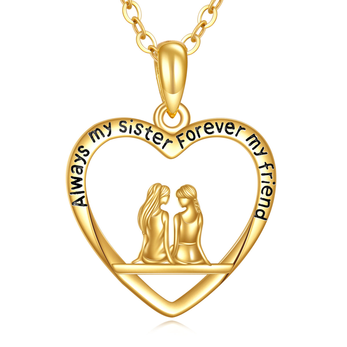 14K Gold Sisters & Heart Pendant Necklace with Engraved Word