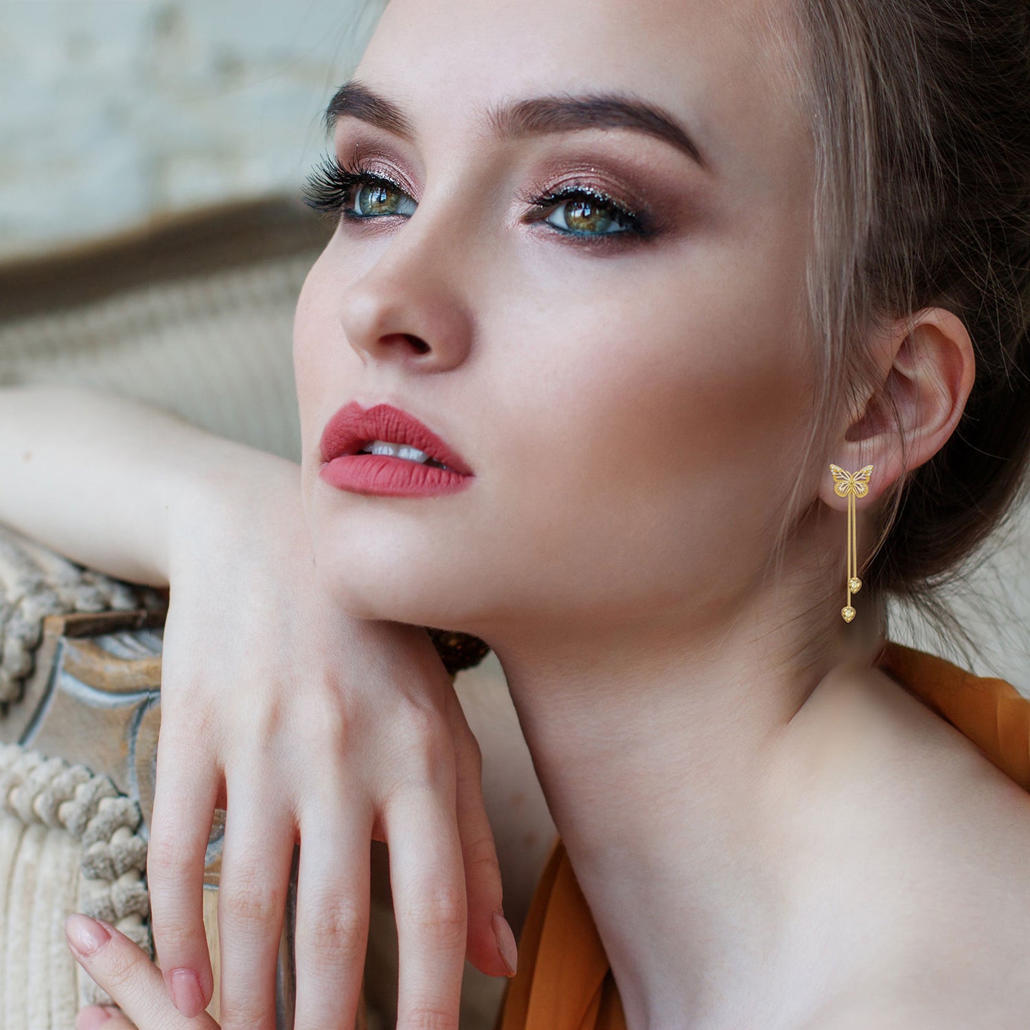 These Sterling Silver with Yellow Gold Plated Cubic Zirconia Butterfly Drop Earrings by YFN are perfect for the modern woman who embraces elegance and sparkle. These captivating Yellow Gold Plated Drop Earrings are crafted from high-quality sterling silver, featuring intricate Butterfly Designs set with dazzling Cubic Zirconia. The yellow gold plating adds a touch of warmth and glamour, elevating both everyday looks and special outfits with a blend of classic charm and contemporary style.