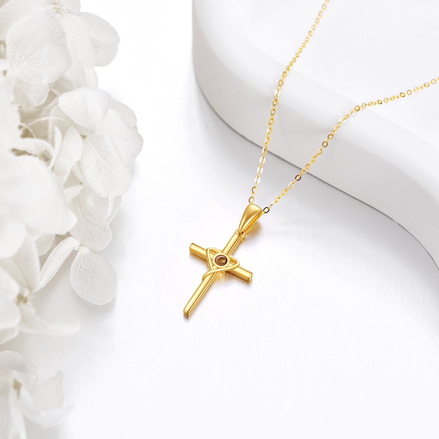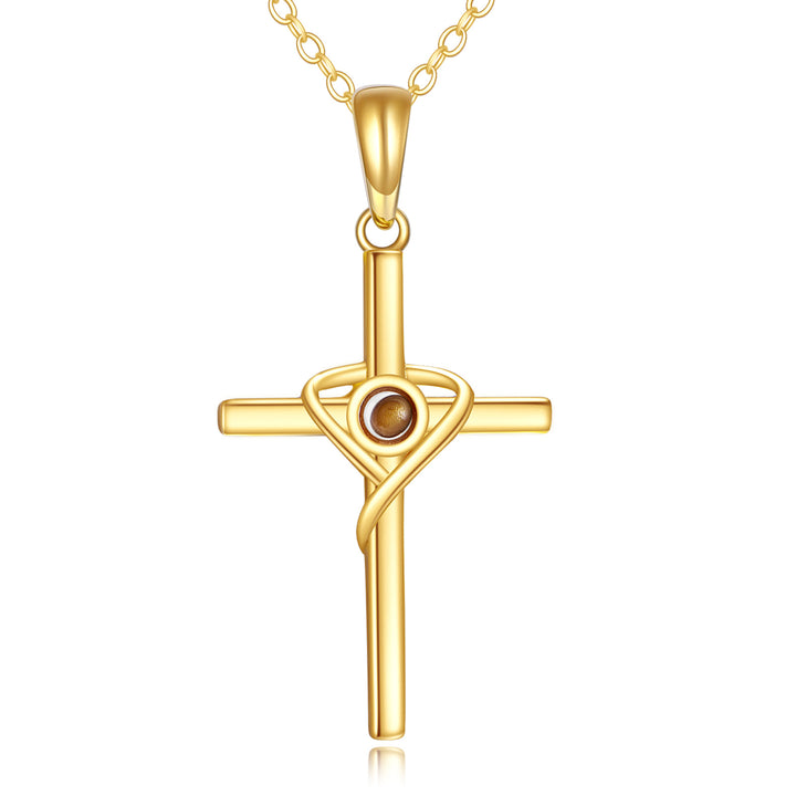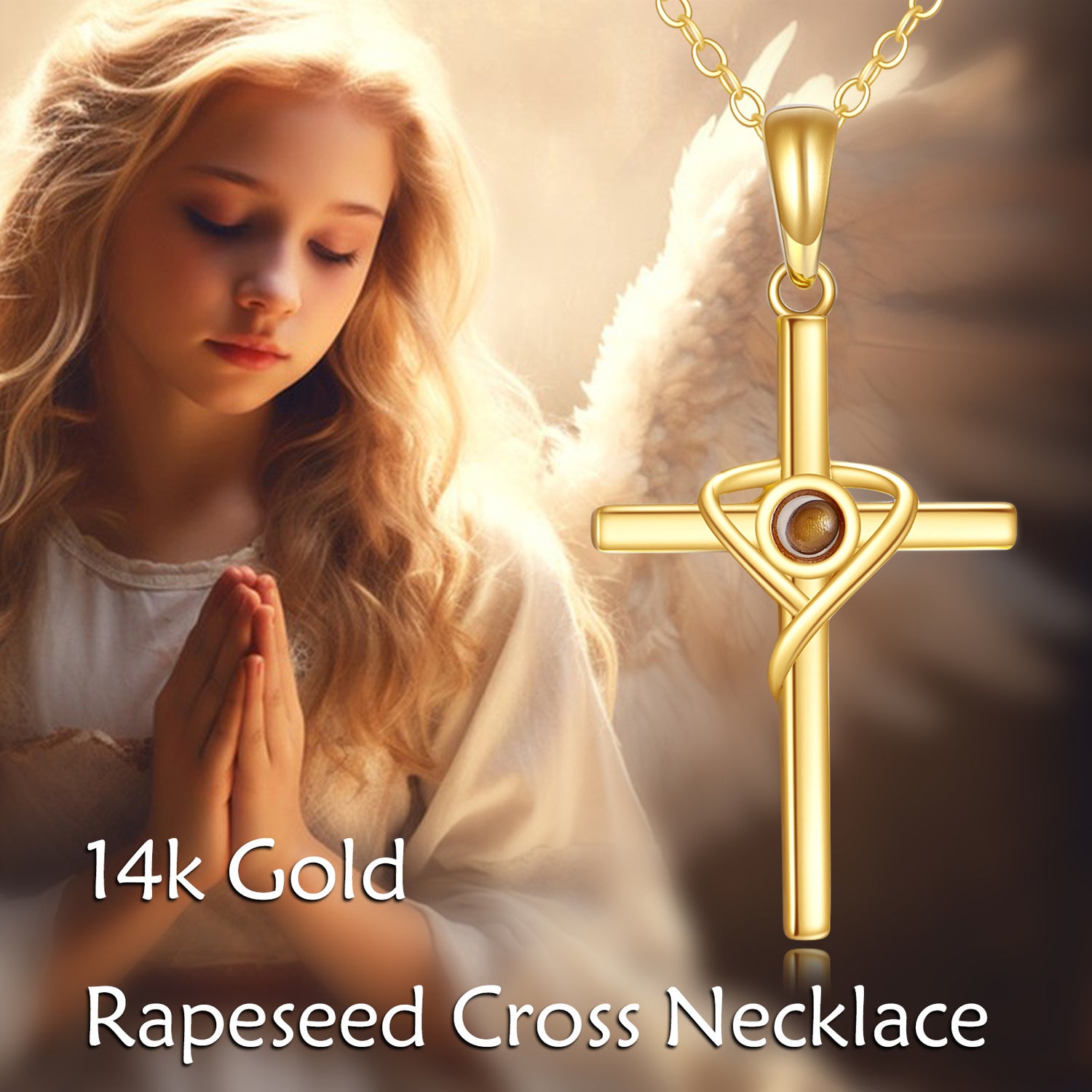 14K Gold Cross Rapeseed Pendant Necklace