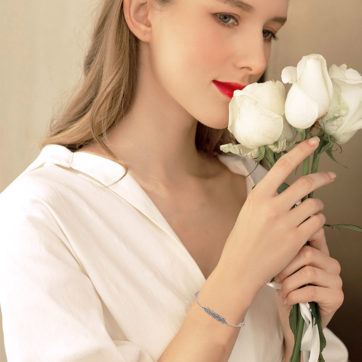 This Sterling Silver Celtic Knot & Infinity Charm Bracelet by YFN celebrates heritage and symbolism through its intricately crafted motifs. Featuring intertwining Celtic Knots paired with the enduring Infinity symbol, the bracelet represents unity, continuity, and timeless elegance. Its stone-free design highlights the refined metalwork, while the white gold plating adds a radiant, contemporary finish. Designed for women who appreciate meaningful adornment, this bracelet layers beautifully with other pieces or stands alone as a subtly powerful statement.