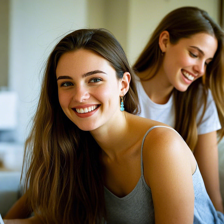 These 14K Gold Turquoise Drop Earrings by YFN are stunning drop earrings for the modern woman, blending elegance and trending fashion. Crafted from high-quality 14K gold, they offer a luxurious shine. The vibrant turquoise stones add a pop of color, symbolizing tranquility and sophistication. Lightweight and comfortable, these versatile earrings are an essential accessory for both casual outings and special events.