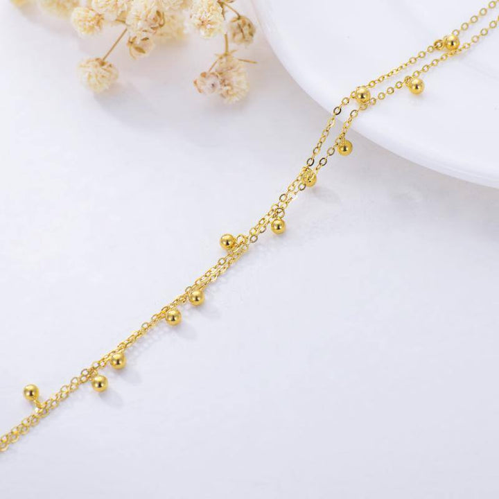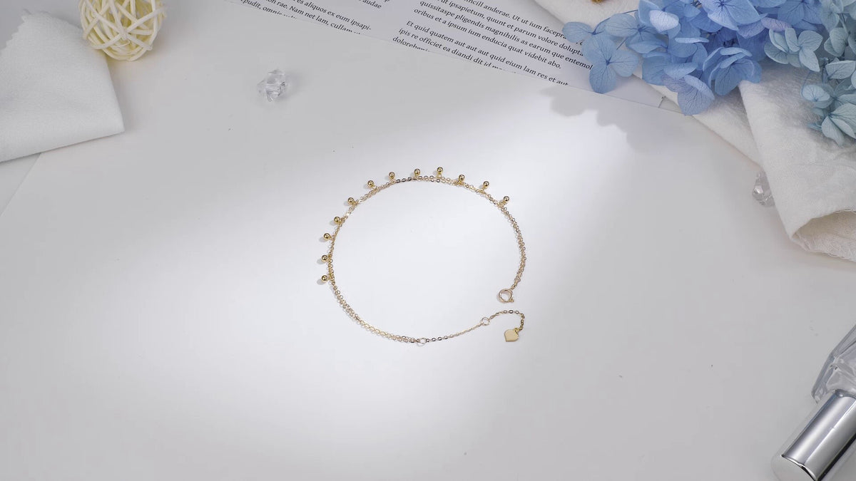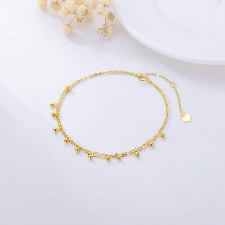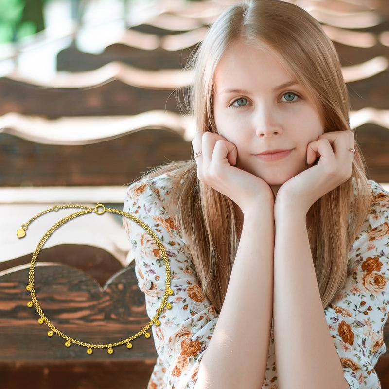 This no-stone Women's Charm Bracelet is crafted from Premium 14K Gold, featuring a Unique Bead Design.