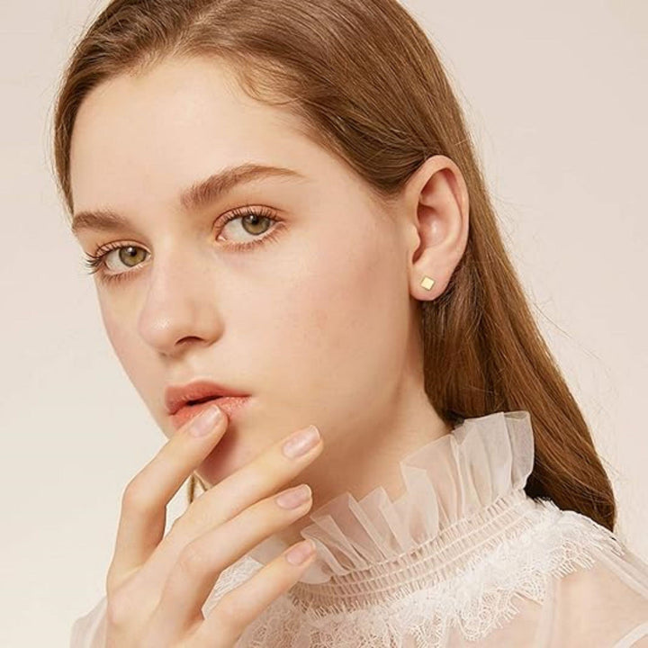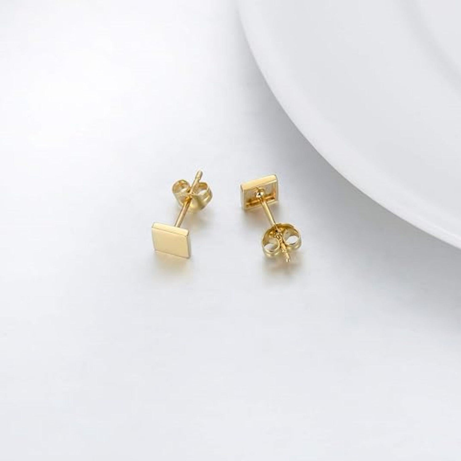 These no-stone Square Stud Earrings are Crafted from Luxurious 14K Gold.