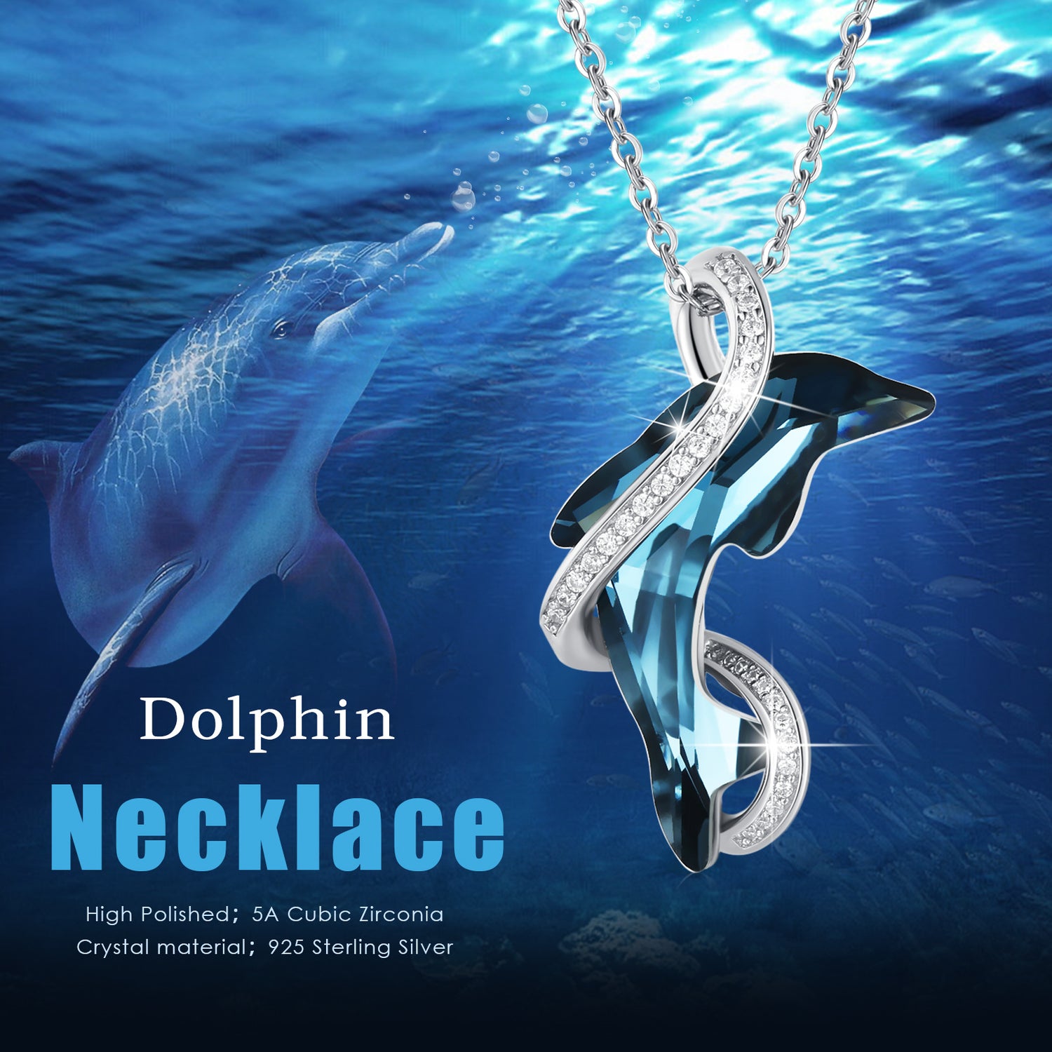 This Sterling Silver Dolphin Crystal Pendant Necklace by YFN captures playful energy and elegant charm in one radiant piece. The shimmering crystal centerpiece reflects light beautifully, while the dolphin design symbolizes joy, freedom, and emotional harmony. Finished in white gold plating for enhanced brilliance, this necklace offers versatility for both casual outings and refined occasions. Designed for women who appreciate meaningful motifs and sophisticated shine, it makes a thoughtful gift or a stylish personal treasure. Effortless yet expressive, it brings a touch of ocean-inspired grace to any jewelry collection.