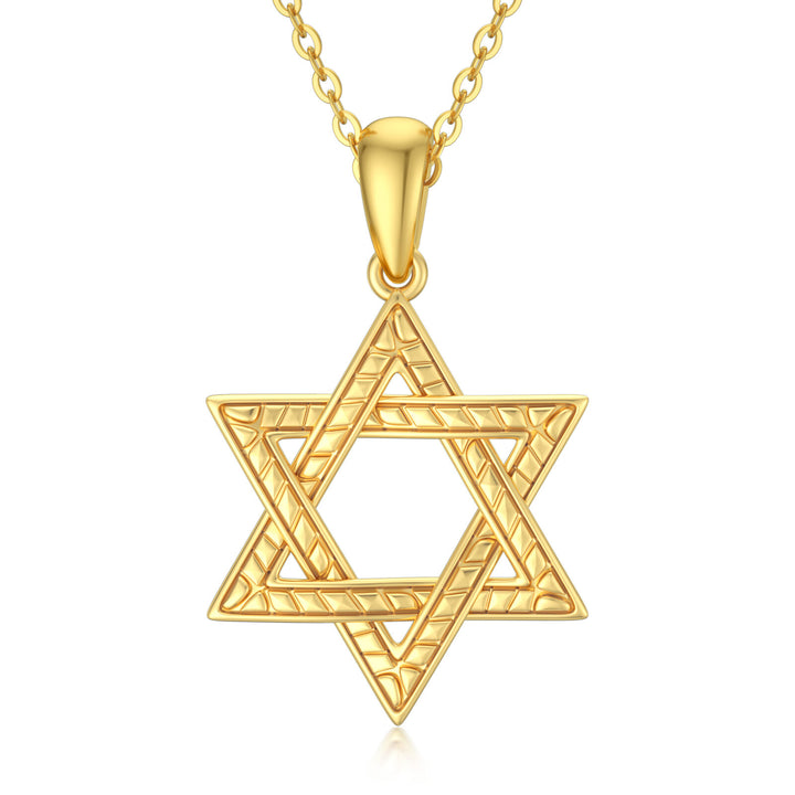 This 14K Gold Star Of David Pendant Necklace by YFN is a pure reflection of sophistication and meaningful symbols for women. This exquisite necklace features a beautifully crafted Star of David pendant in lustrous 14K gold. With no stones to distract from its intricate design, this stone-free piece stands as a perfect blend of tradition and modernity, making it an ideal gift for any special occasion or a cherished addition to your own jewelry collection.