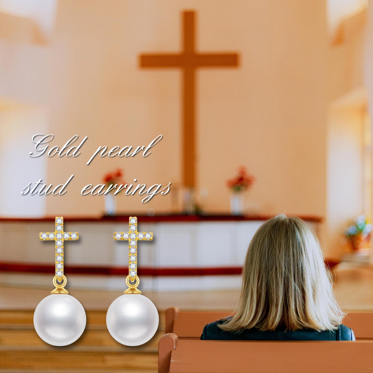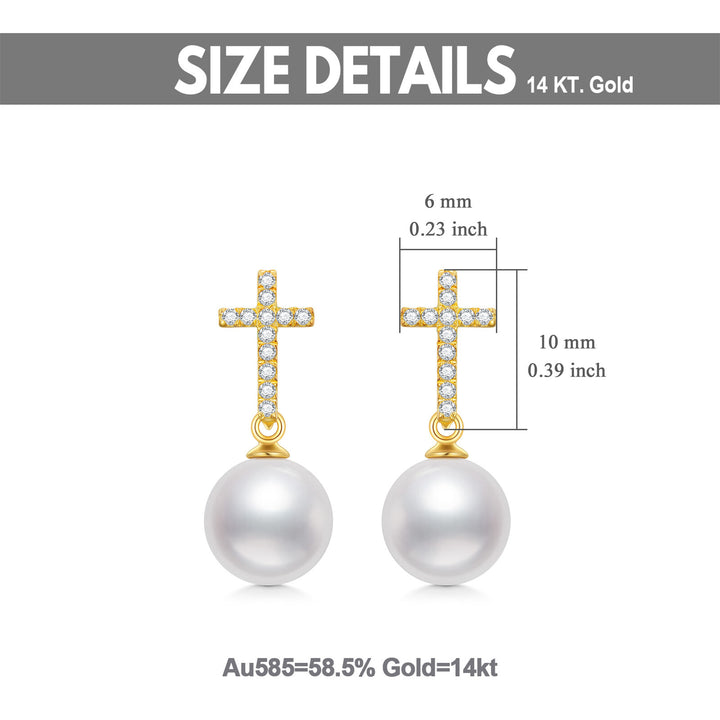 These Women's Drop Earrings are crafted from Genuine 14K Gold, Adorned with Lustrous Pearls and a Timeless Cross Design.