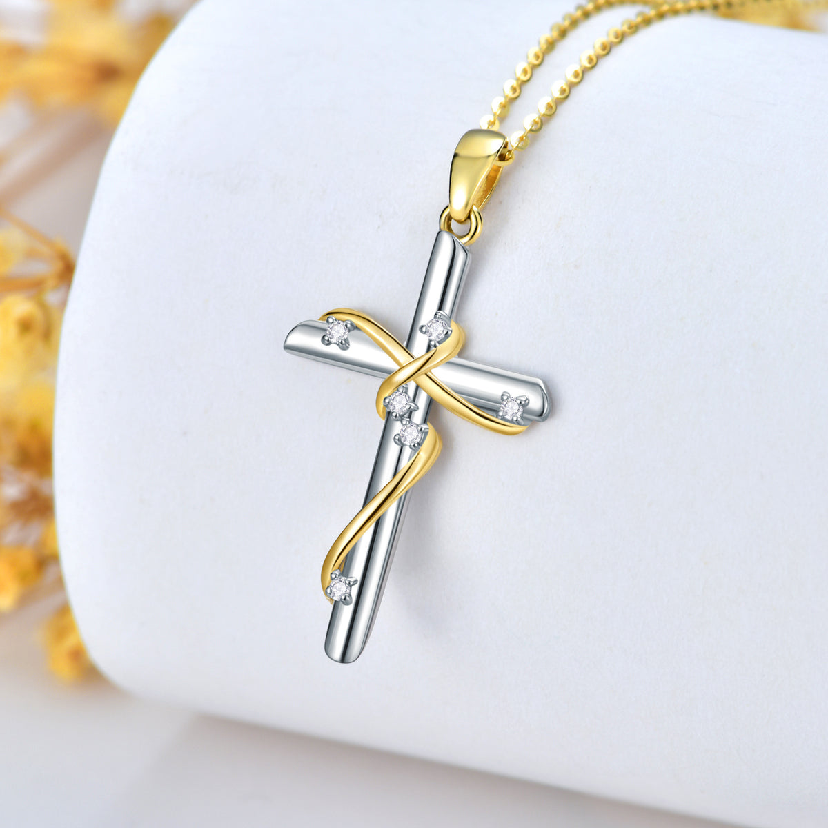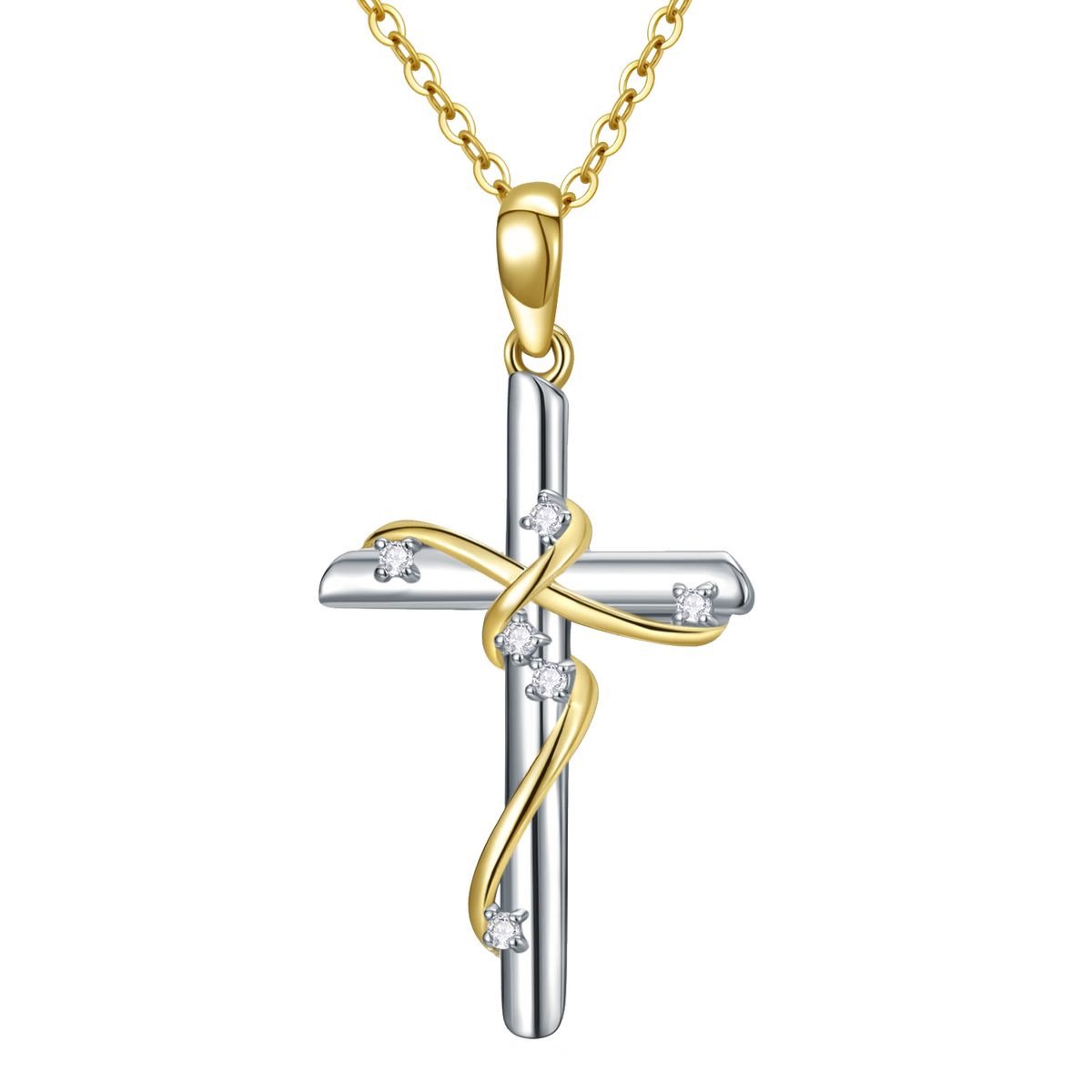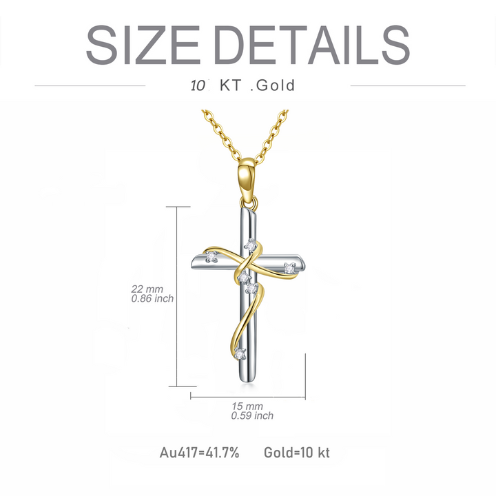 10K Gold Two-Tone Circular Diamond Cross Pendant Necklace For Women