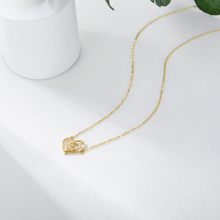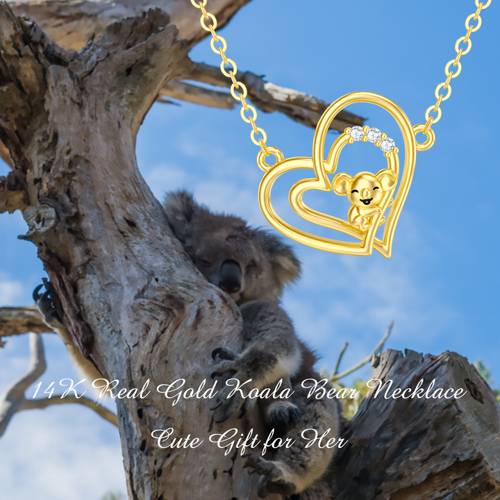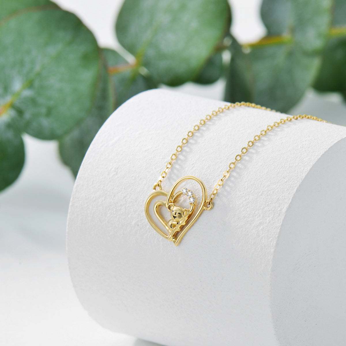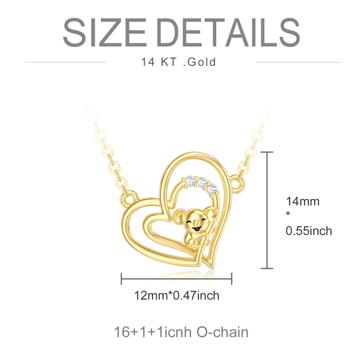 14K Gold Cubic Zirconia Koala & Heart Pendant Necklace For Women