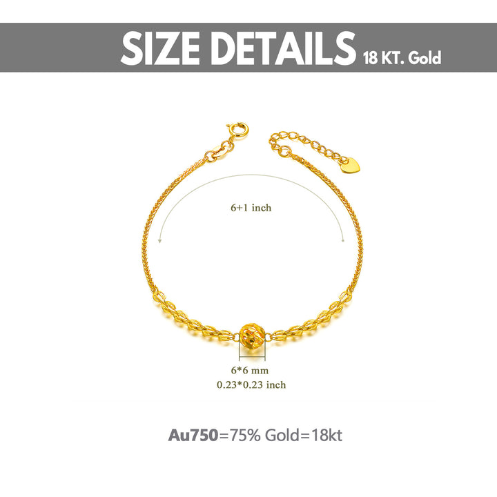 This 18K Gold Spherical Charm Bracelet by YFN is the epitome of elegance and sophistication for women. Crafted with precision from 18K Gold, this no-stone, Spherical Charm Bracelet embodies minimalistic charm. Its unique, contemporary flair enhances any wardrobe with a luxurious gold touch for both casual and formal occasions.