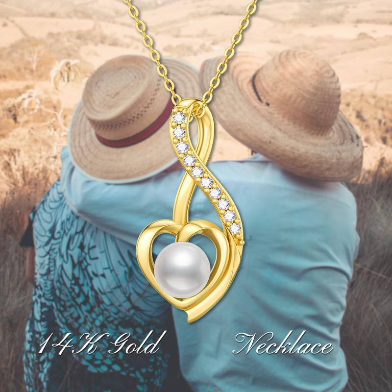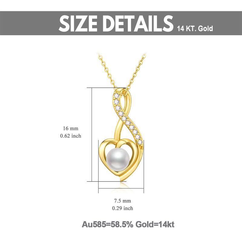 14K Gold Pearl Heart & Ribbon Pendant Necklace
