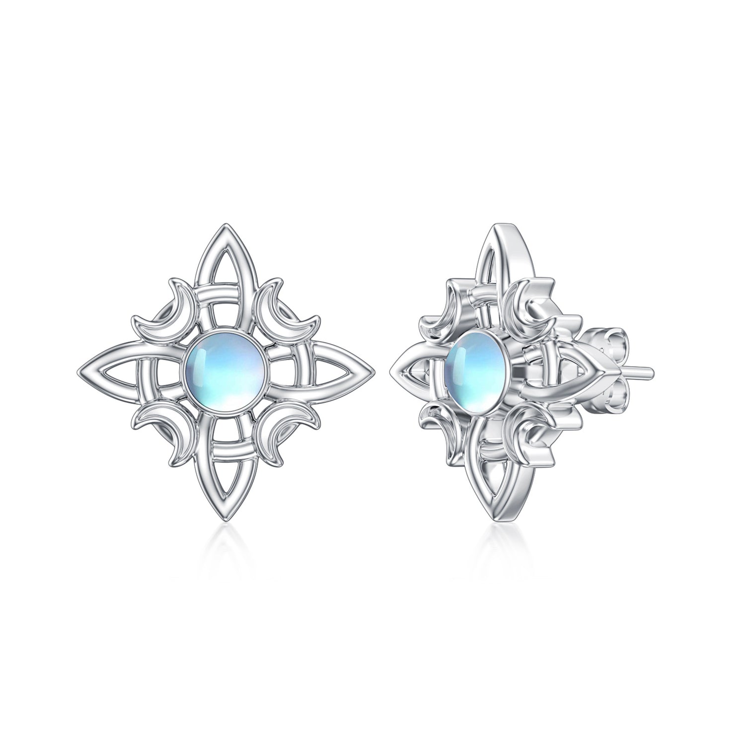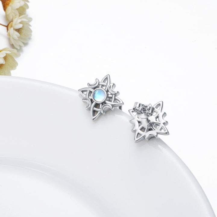 Sterling Silver Circular Shaped Moonstone Star & Witch Knot Stud Earrings