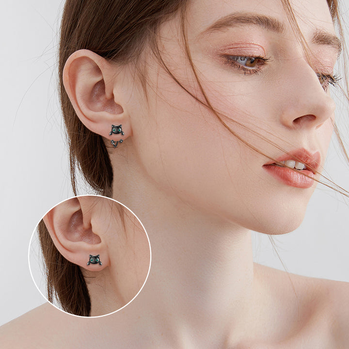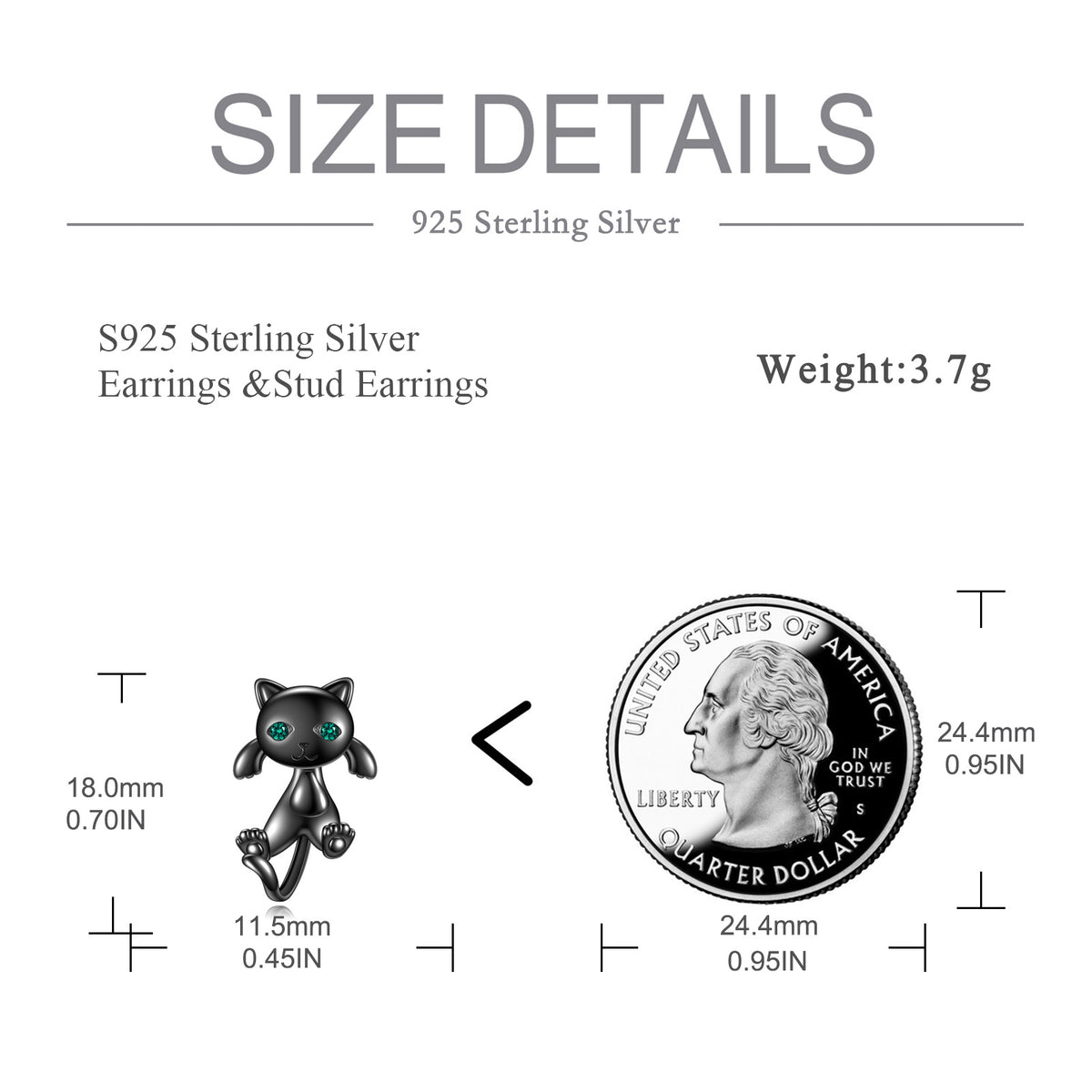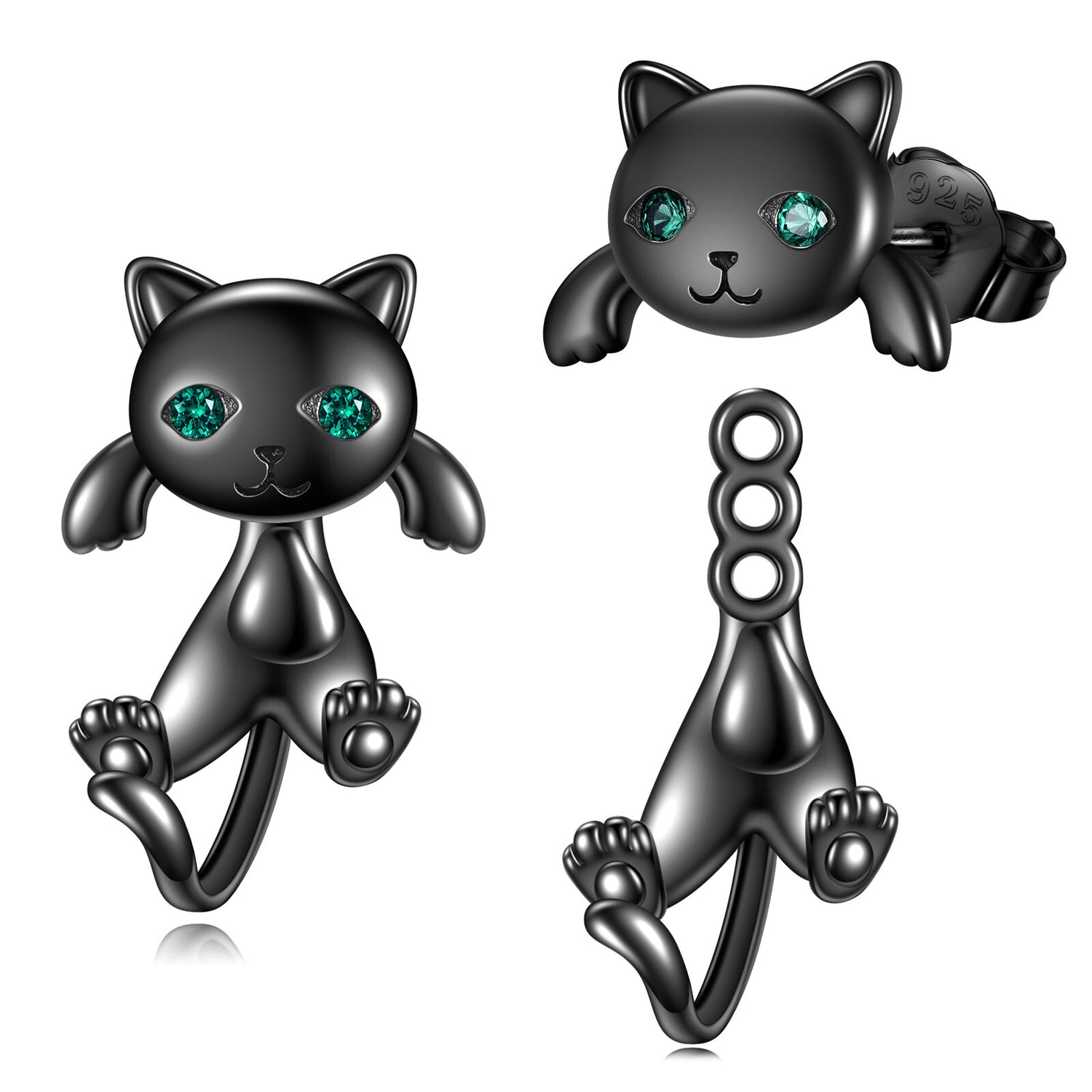 Sterling silver; black rhodium plating; round zircon stones; cat jacket earring design.