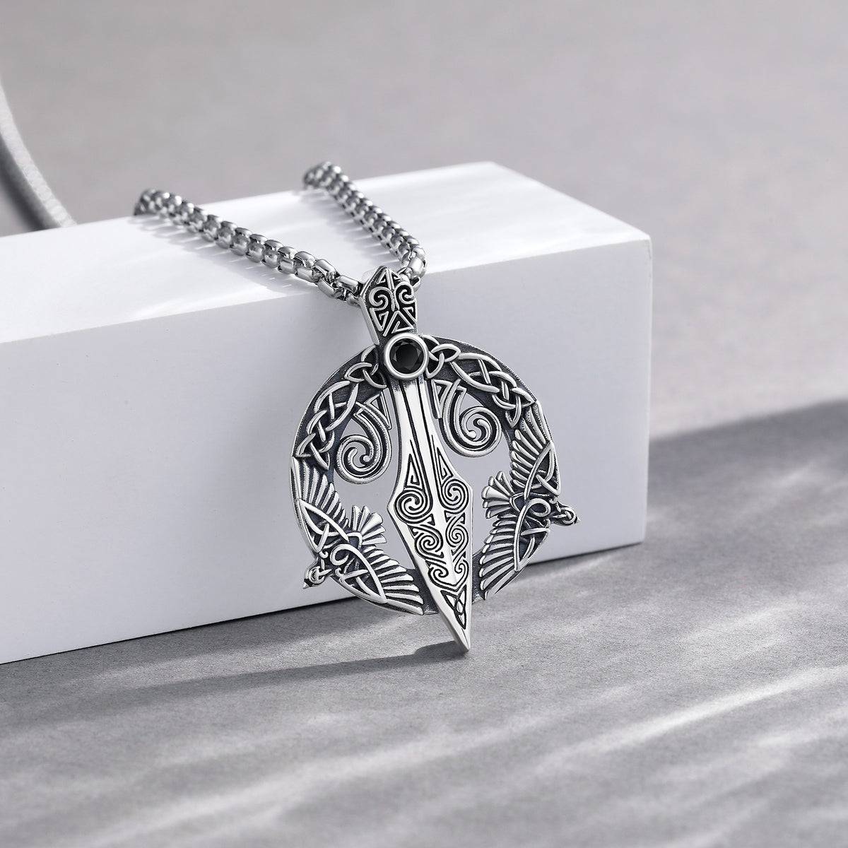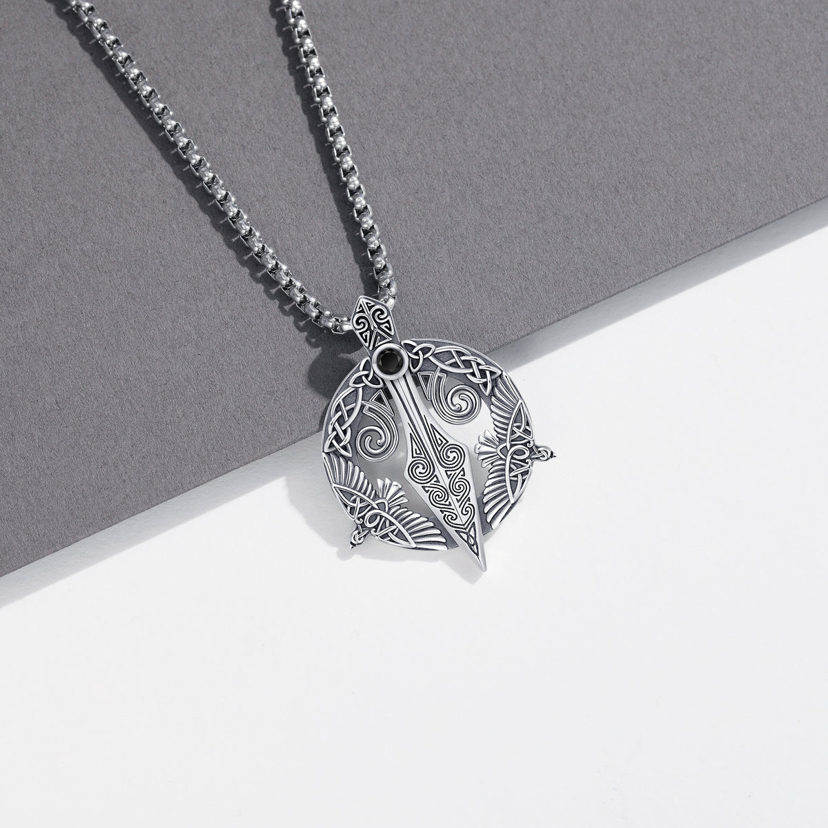 This no-stone Unisex Pendant Necklace is crafted from High-Quality Sterling Silver with a Retro Silver Finish, featuring an Intricately Designed Eagle Intertwined with a Celtic Knot.