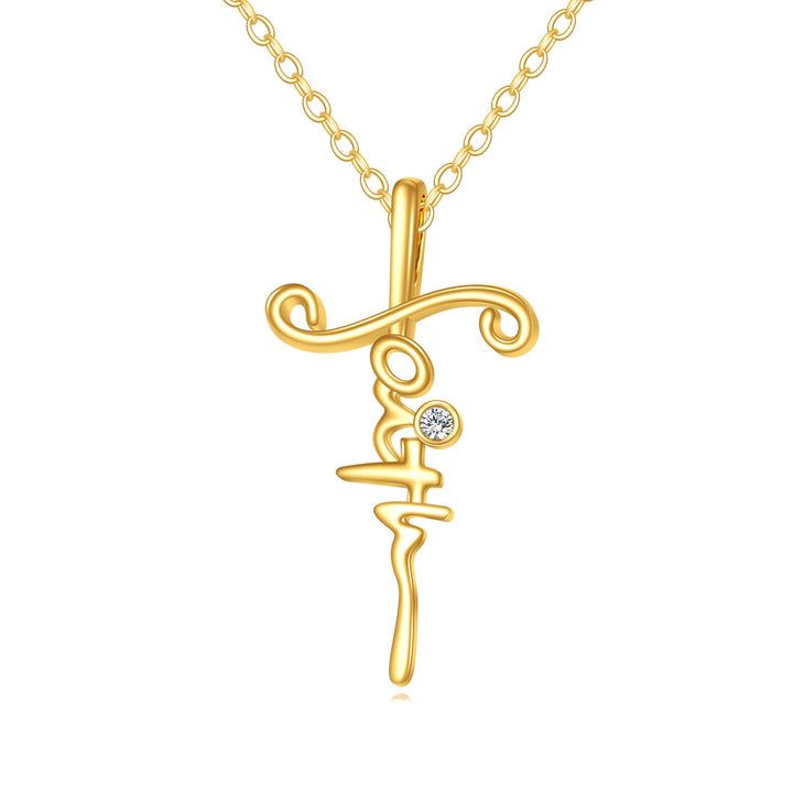 14K Gold Cubic Zirconia Cross Pendant Necklace