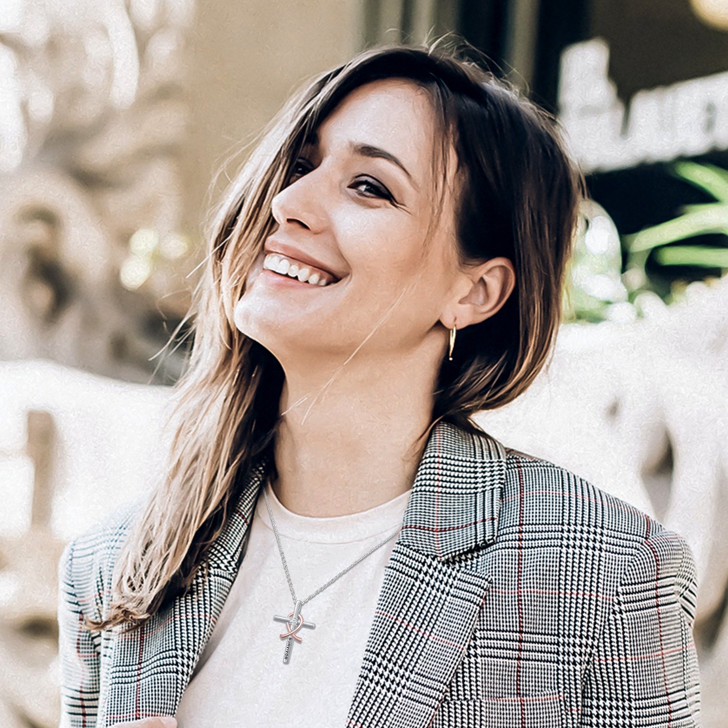 This Sterling Silver Two-tone Circular Shaped Cubic Zirconia Cross & Ribbon Pendant Necklace by YFN is a stunning accessory tailored for women, blending sparkle with spiritual significance. This exquisite Pendant Necklace boasts high-quality sterling silver craftsmanship. The circular pendant is adorned with brilliant clear Cubic Zirconia stones, and uniquely accented with a delicate Cross and Ribbon Design in elegant Silver and Rose Gold Tones, making it an ideal choice for both everyday wear and special occasions.
