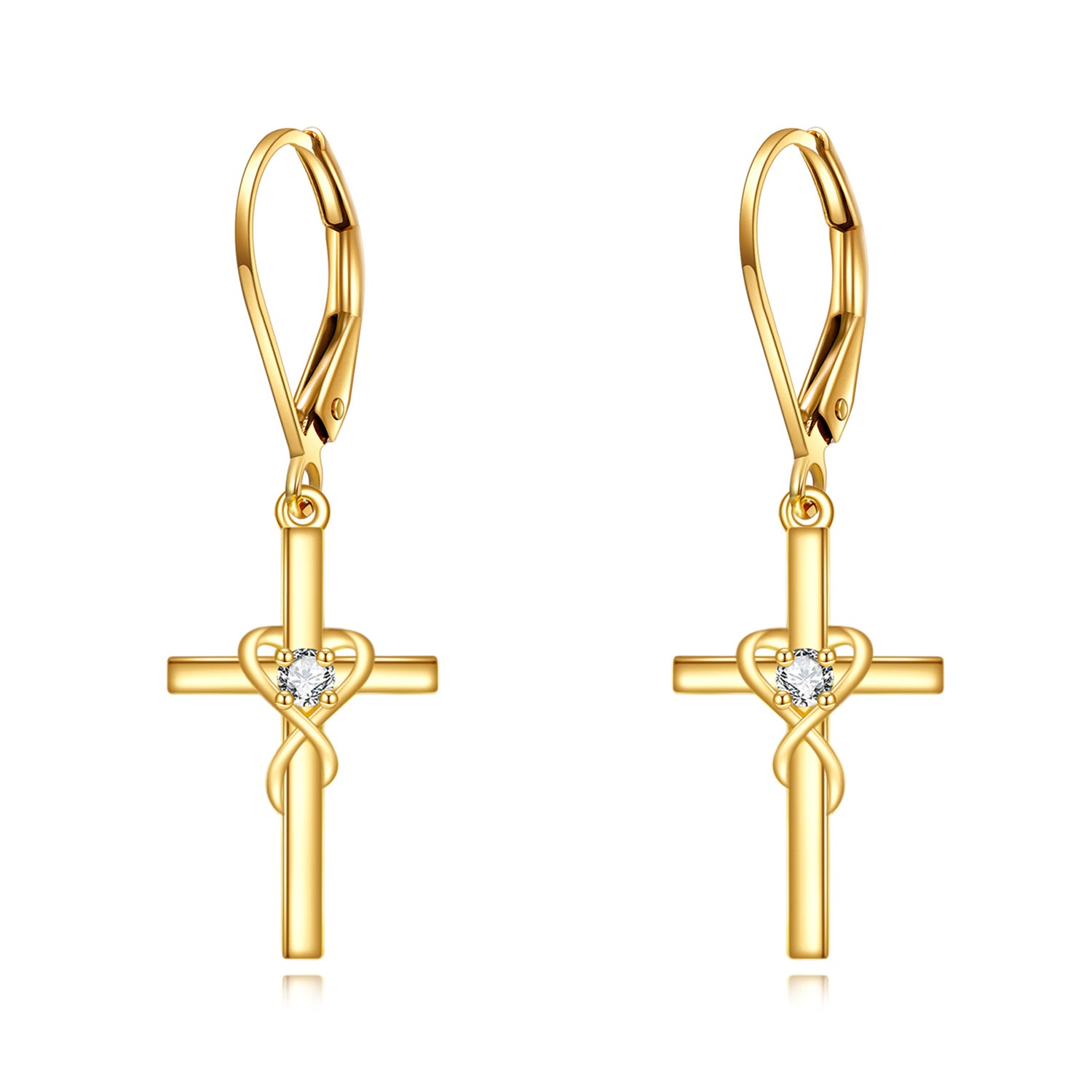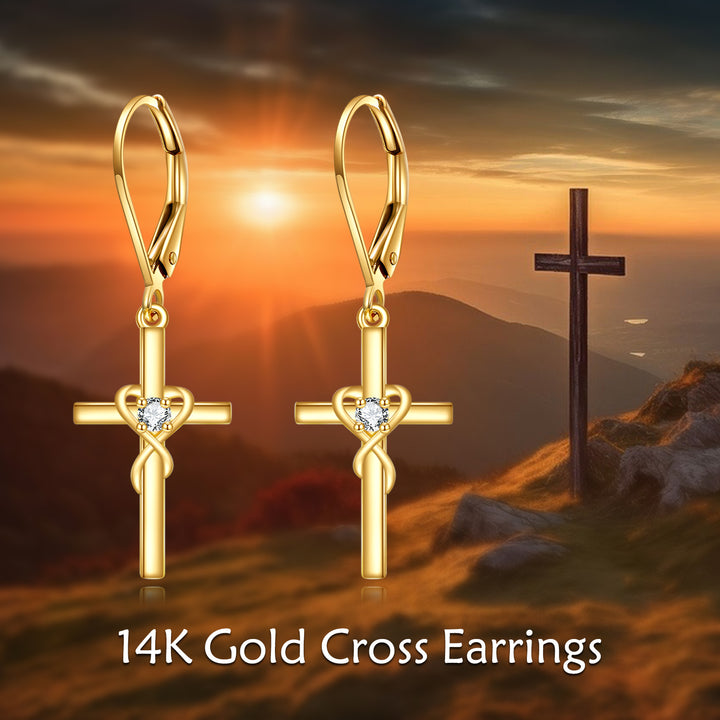 14K Gold Cubic Zirconia Cross Drop Earrings