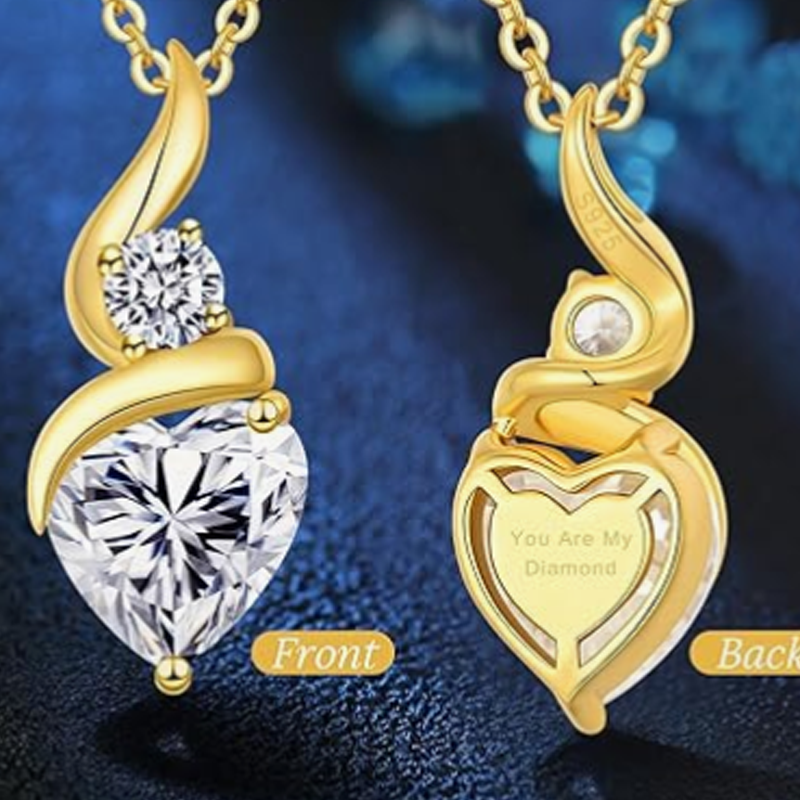 This 14K Gold Moissanite Personalized Birthstone Engraving Heart Infinity Symbol Necklace by YFN celebrates everlasting love through an intricate fusion of symbols and brilliance. The pendant unites a glowing heart motif with the timeless infinity emblem, creating a deeply romantic expression of devotion and continuity. Its centre features a radiant 2-carat heart-shaped moissanite that captures the light with exceptional intensity, while shimmering cubic zirconia birthstones add a personal, meaningful touch. Each necklace can be uniquely customized with an engraving or a chosen birthstone, transforming the piece into a sentimental treasure that reflects shared memories and heartfelt connection. The flame-inspired silhouette carries a message of passion and enduring affection, making it a meaningful keepsake for anniversaries, birthdays, or intimate celebrations. With its elegant craftsmanship and symbolic depth, this necklace becomes a wearable reminder of love that lasts beyond time.