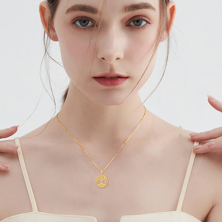 This Tree Of Life Pendant Necklace by YFN is a masterpiece of minimalistic luxury. Crafted from 14K gold, this stone-free pendant showcases the intricate Tree of Life design, symbolizing wisdom, strength, and growth. Its rich gold hue and superior craftsmanship offer a sophisticated, meaningful way for women to express their personal journey.