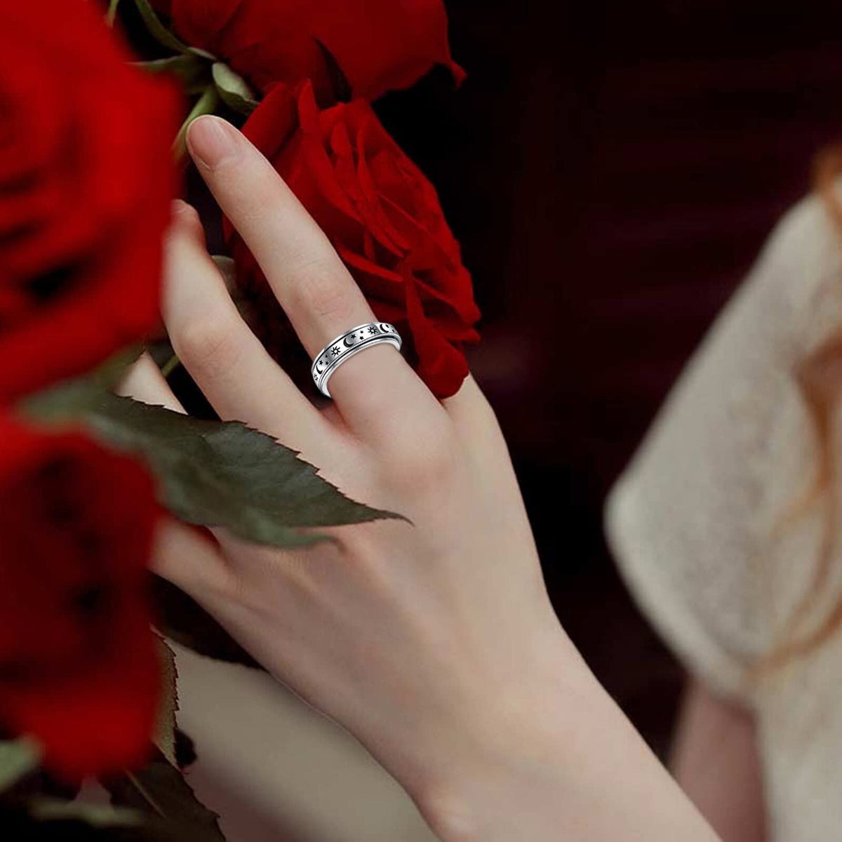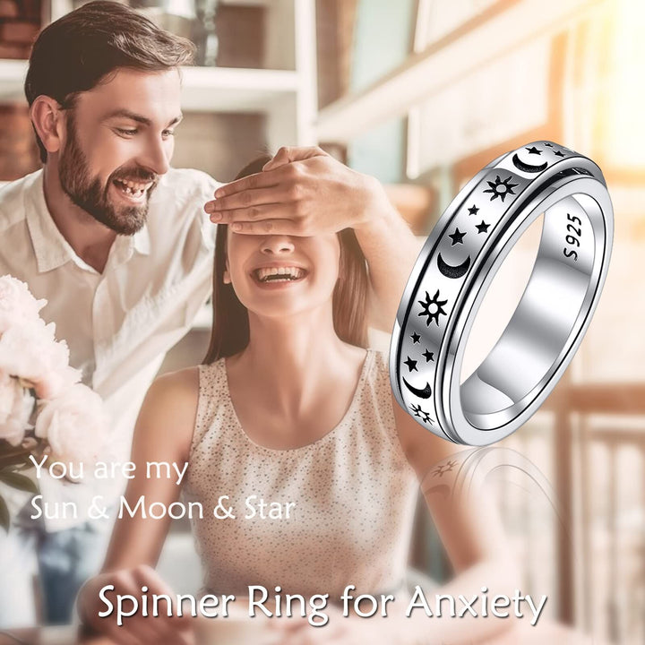 Sterling Silver Moon Star Sun Ring Anxiety Jewlery For Girls Women