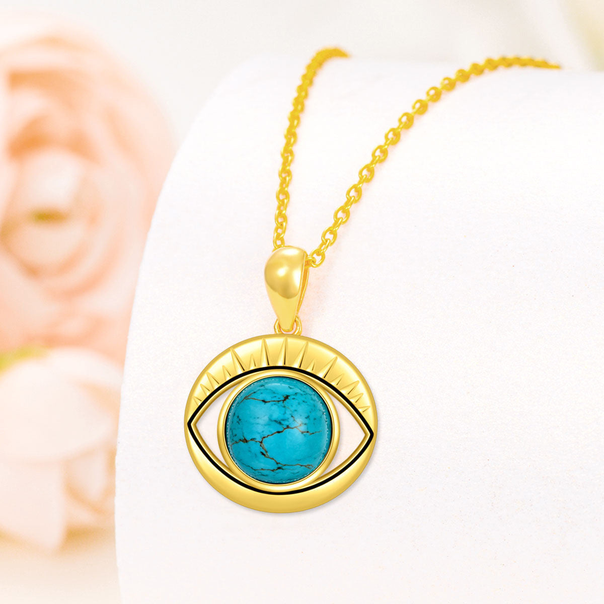 14K Gold Turquoise Evil Eye Pendant Necklace