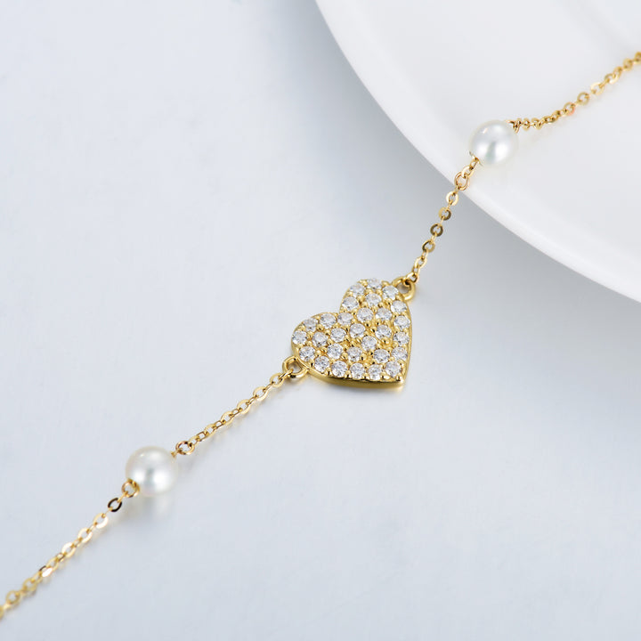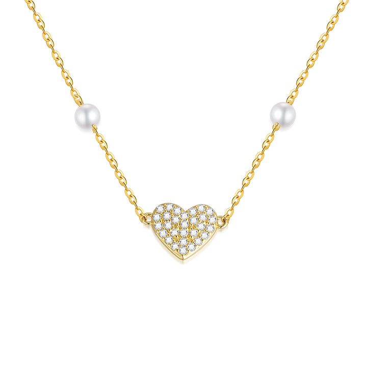 14K Gold Moissanite & Pearl Heart Pendant Necklace