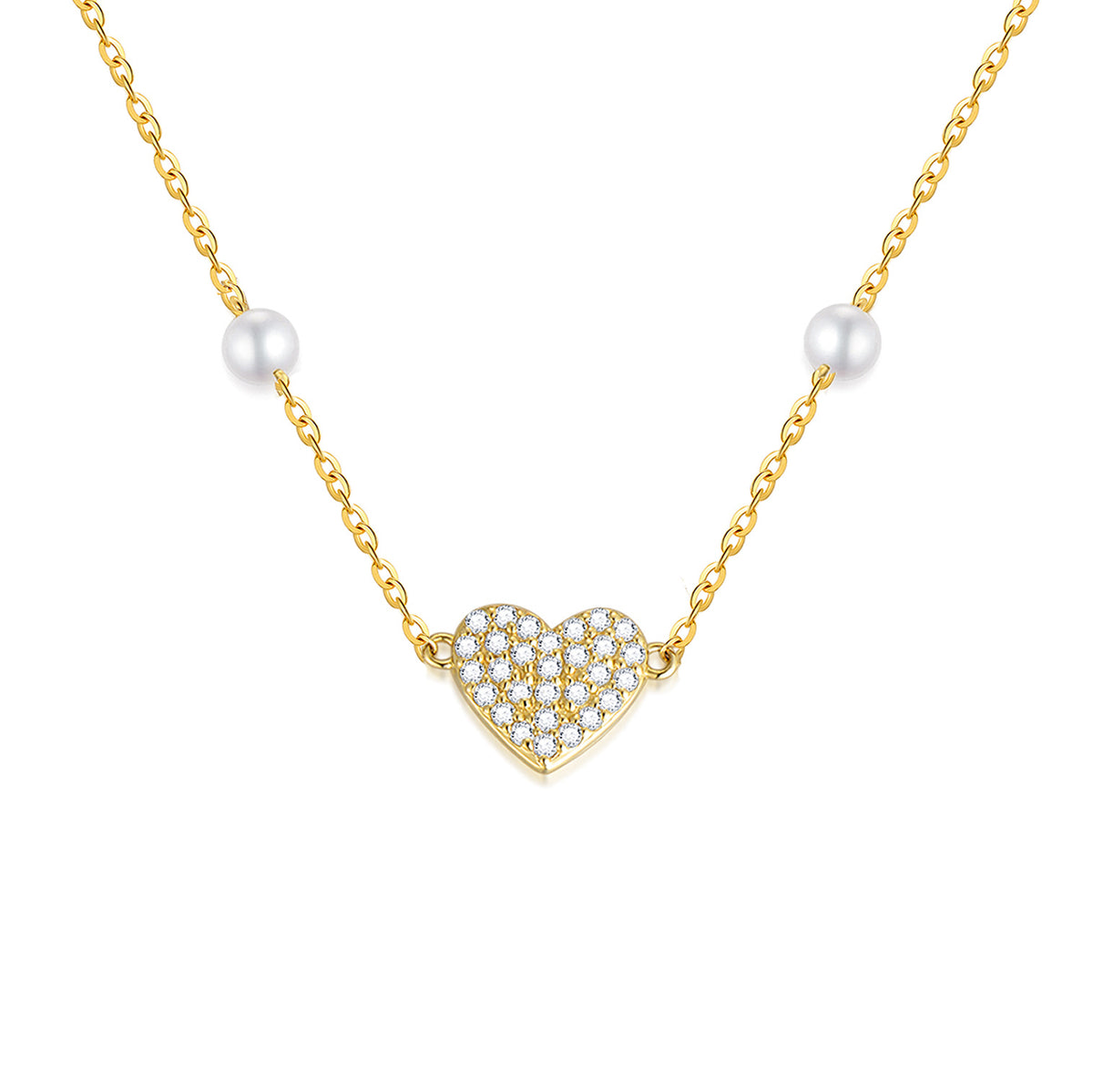 This 14K Gold Moissanite & Pearl Heart Pendant Necklace by YFN is the epitome of elegance and romantic charm for women. This exquisite necklace combines the brilliant sparkle of Moissanite and the classic allure of Pearls, all set in a heart-shaped 14K gold pendant. Perfect for any occasion, this versatile piece symbolizes love and refinement, making it a luxurious and meaningful addition to any jewelry collection.