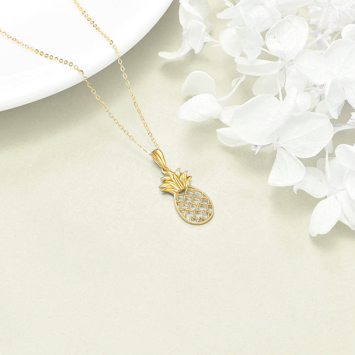 This 14K Gold Pineapple Pendant Necklace by YFN brings whimsical elegance to fine jewelry. The pineapple motif symbolizes warmth and hospitality, while the stone-free 14K gold construction ensures timeless versatility. A charming accessory for women who appreciate playful yet refined pieces.