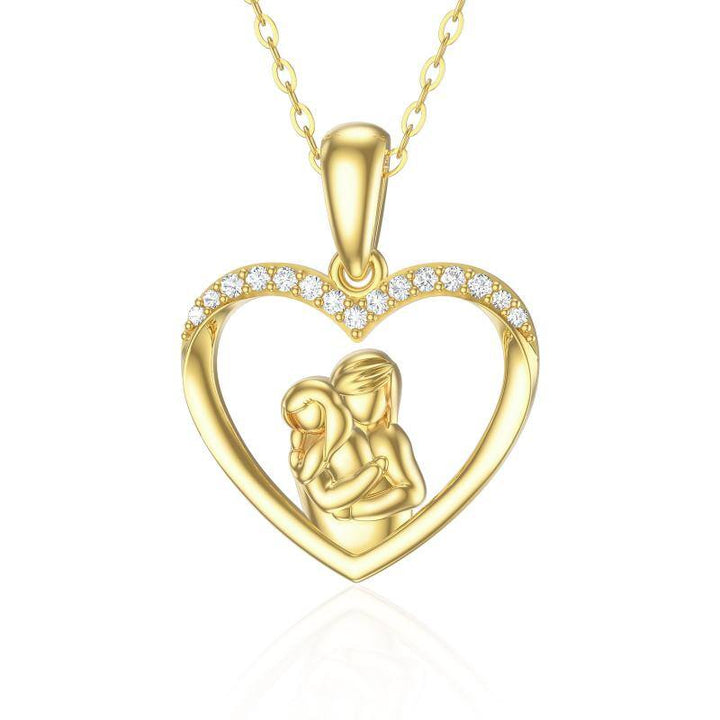 Adorned with sparkling Moissanite, this 14K Gold Heart Shaped Pendant Necklace symbolizes the bond between Mother and Daughter.